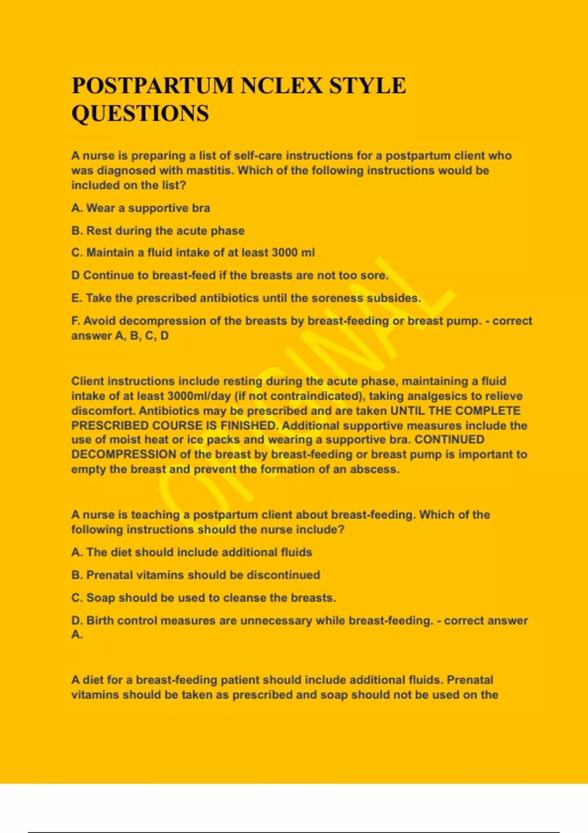 POSTPARTUM NCLEX STYLE QUESTIONS|UPDATED&VERIFIED|GUARANTEED SUCCESS