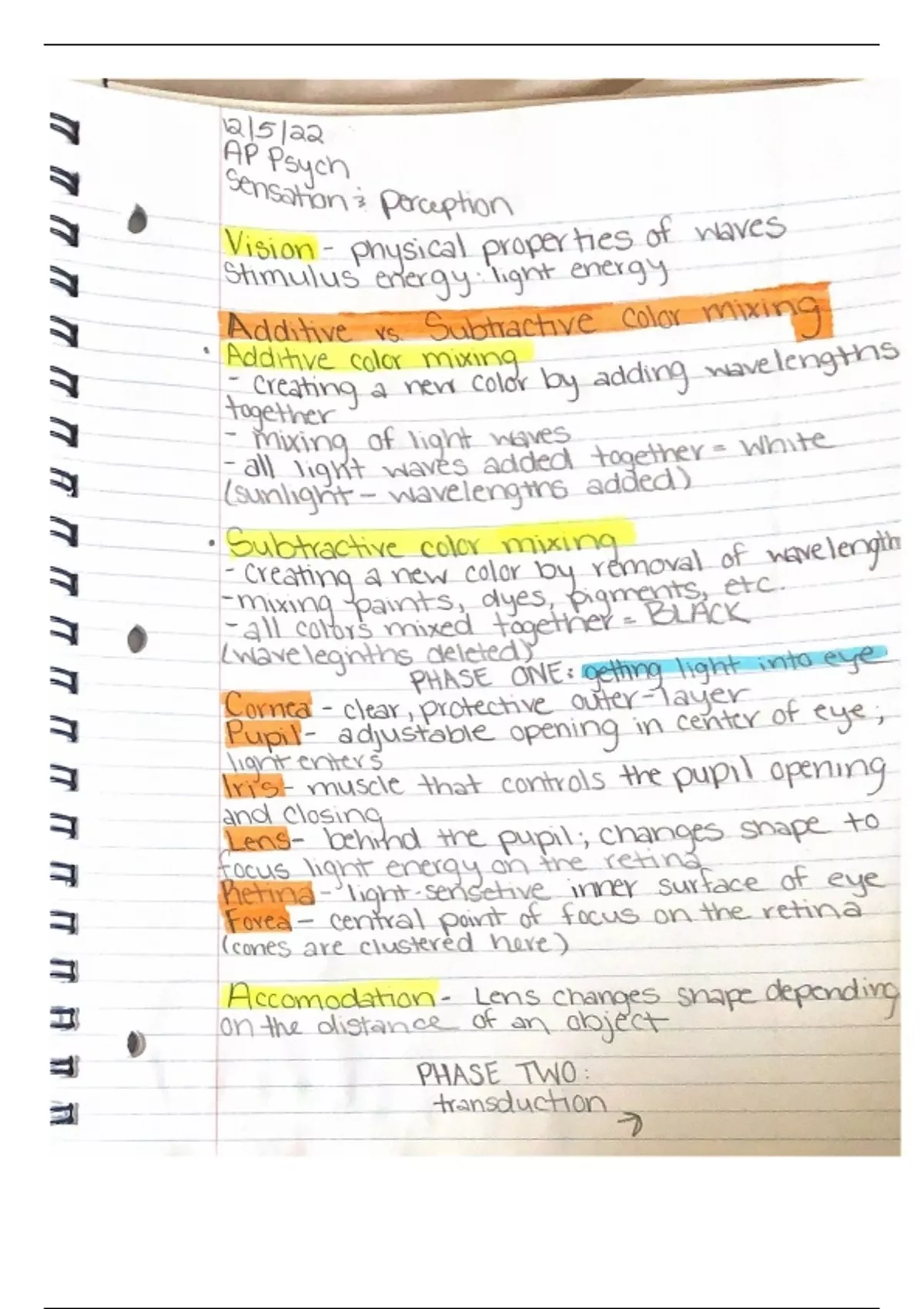 Human Physiology Class Notes from 2022-23 school year. This is linked to another file, this one includes in depth description of eyes & vision.