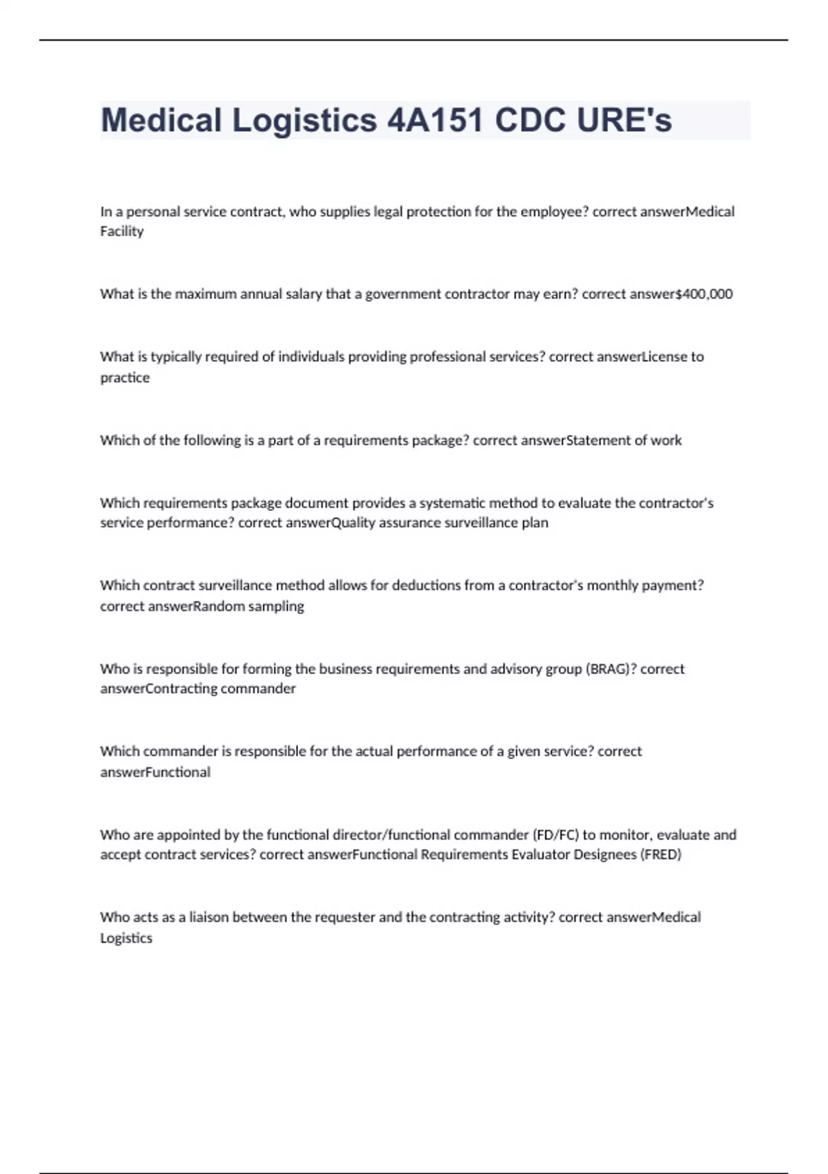 Medical Logistics 4A151 CDC URE's exam 2023 with 100% correct answers