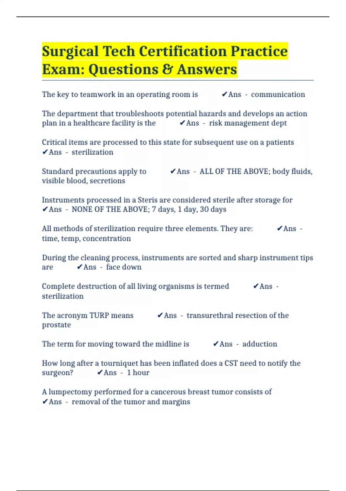 Surgical Tech Certification Practice Exam: Questions & Answers