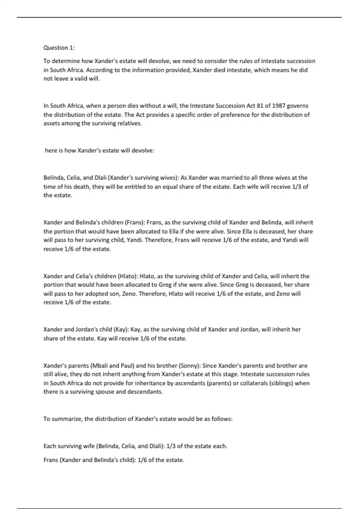 To determine how Xander's estate will devolve, we need to consider the rules of intestate succession
