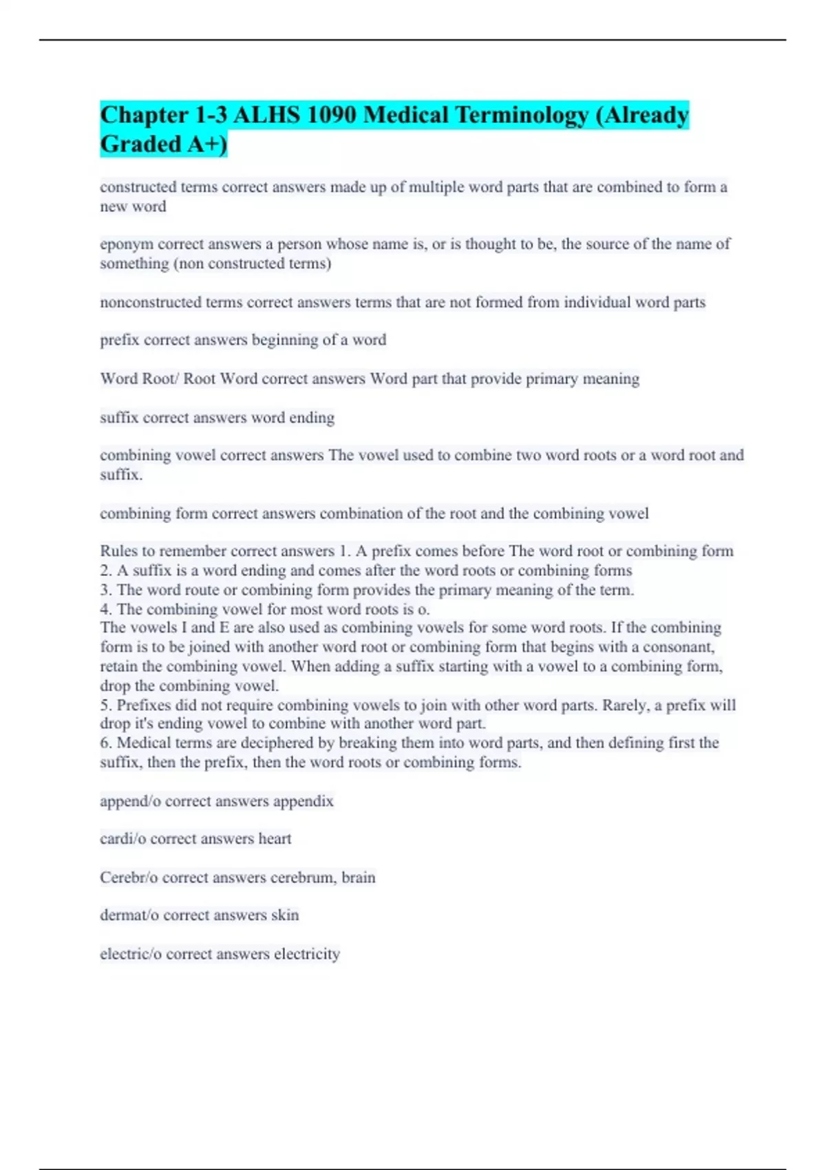 Chapter 1-3 ALHS 1090 Medical Terminology (Already Graded A+)