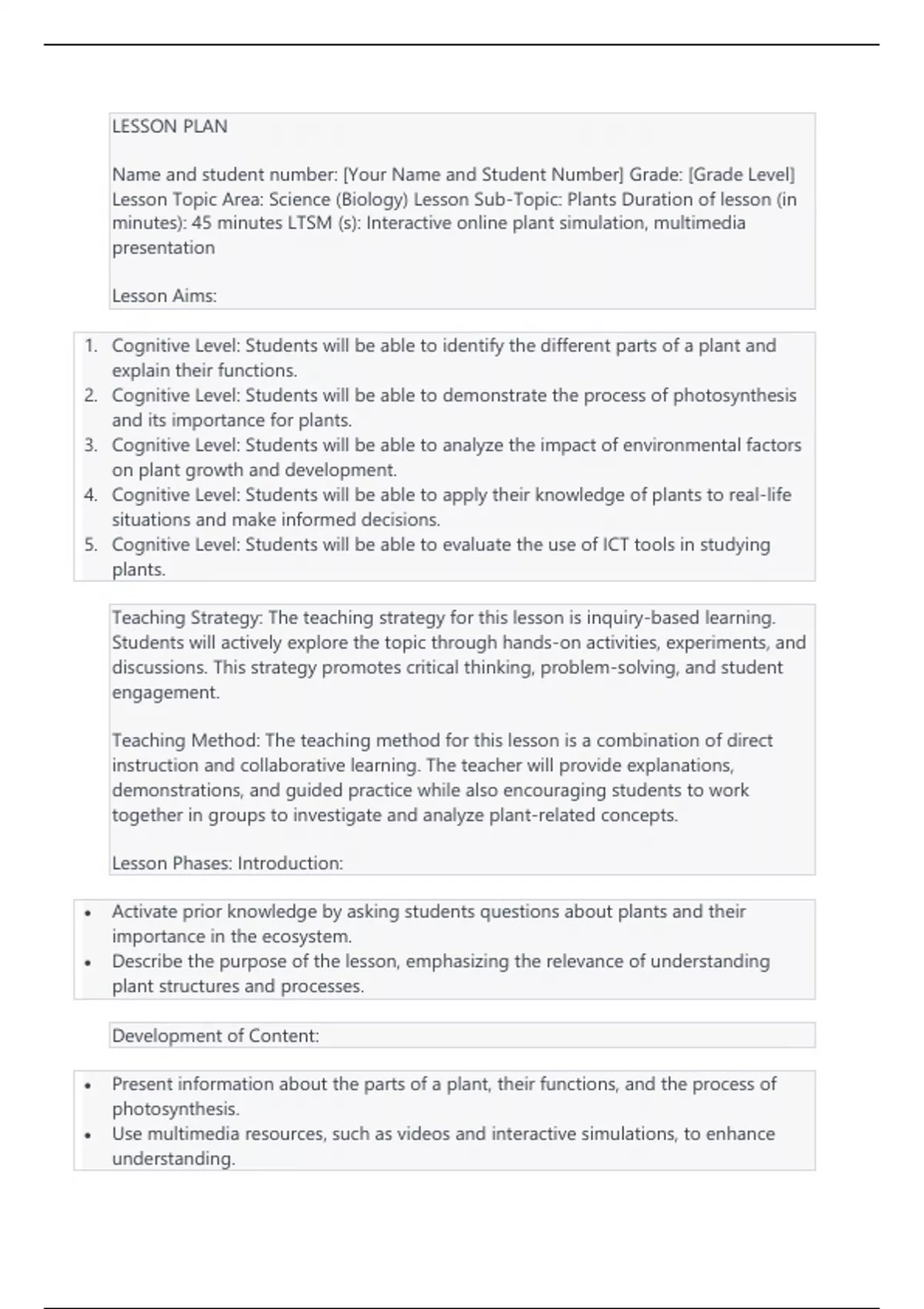 minutes): 45 minutes LTSM (s): Interactive online plant simulation, multimedia