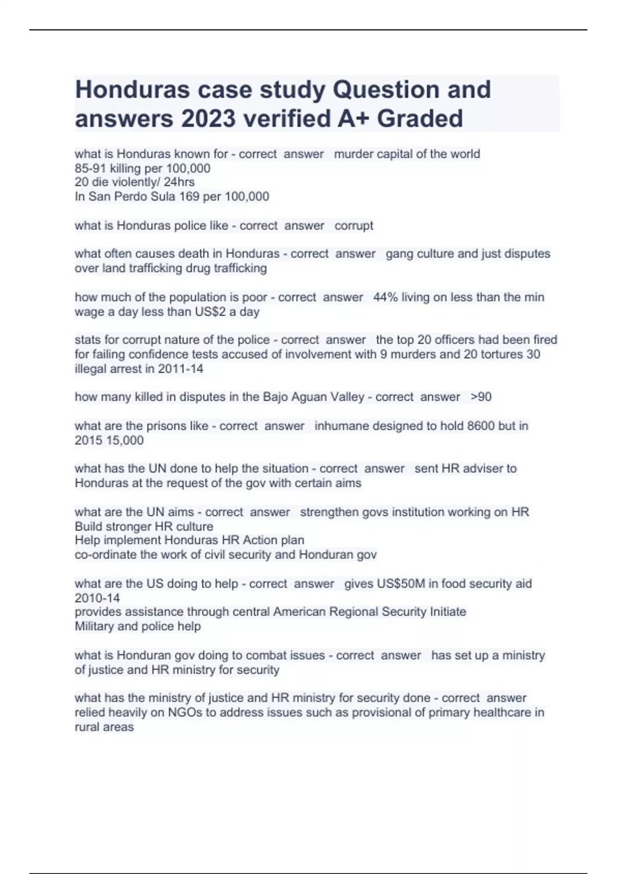 Honduras case study Question and answers 2023 verified A+ Graded