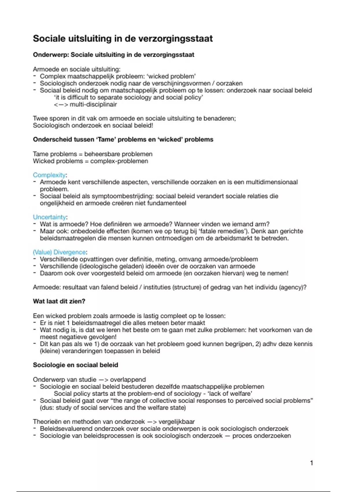 Onderwerp: Sociale uitsluiting in de verzorgingsstaat