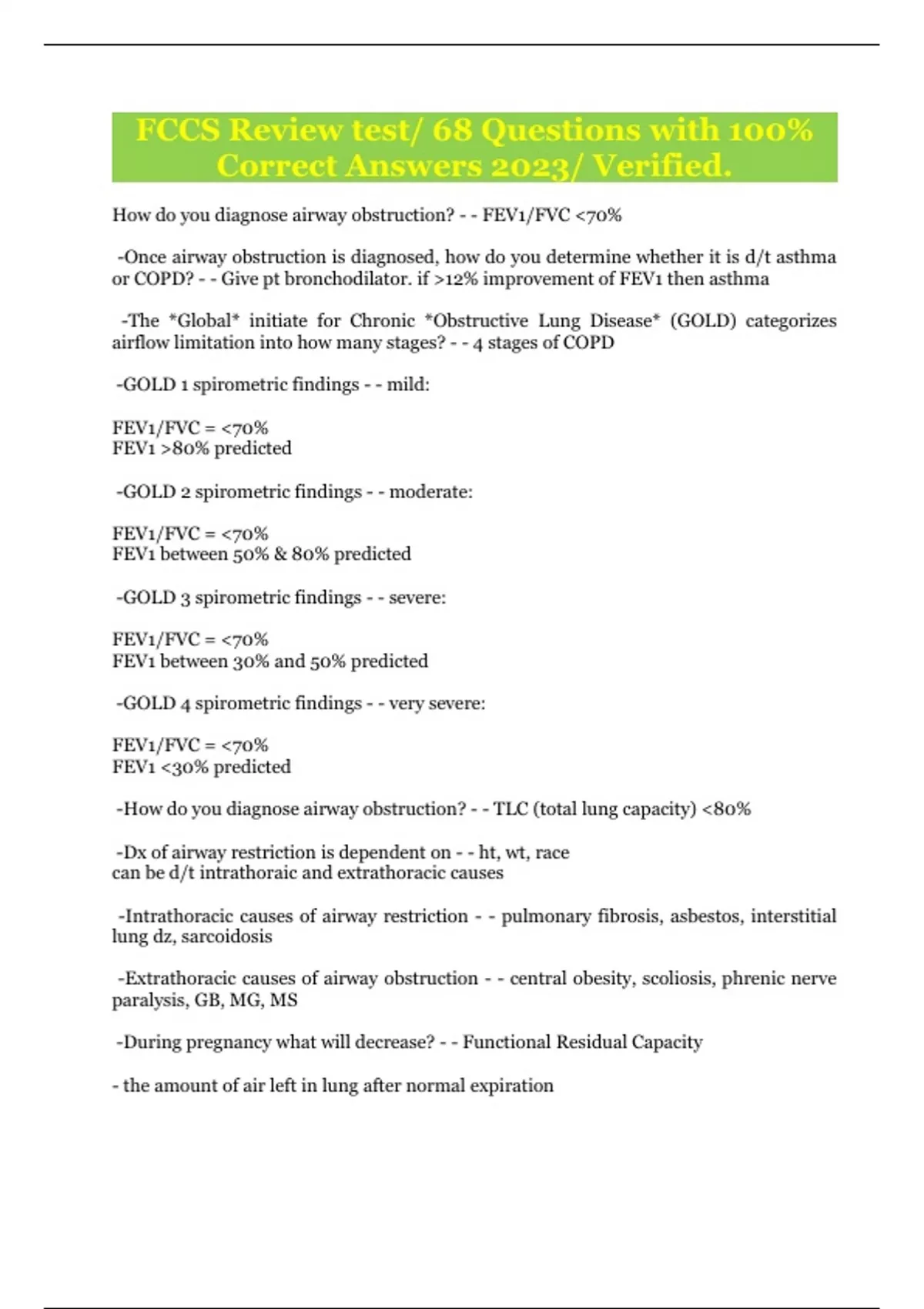 FCCS Review test/ 68 Questions with 100%