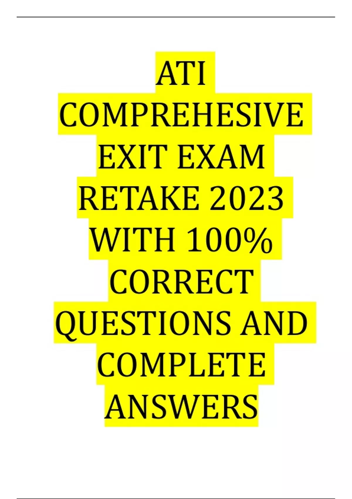 ATI COMPREHESIVE EXIT EXAM RETAKE 2023 WITH 100% CORRECT QUESTIONS AND COMPLETE ANSWERS