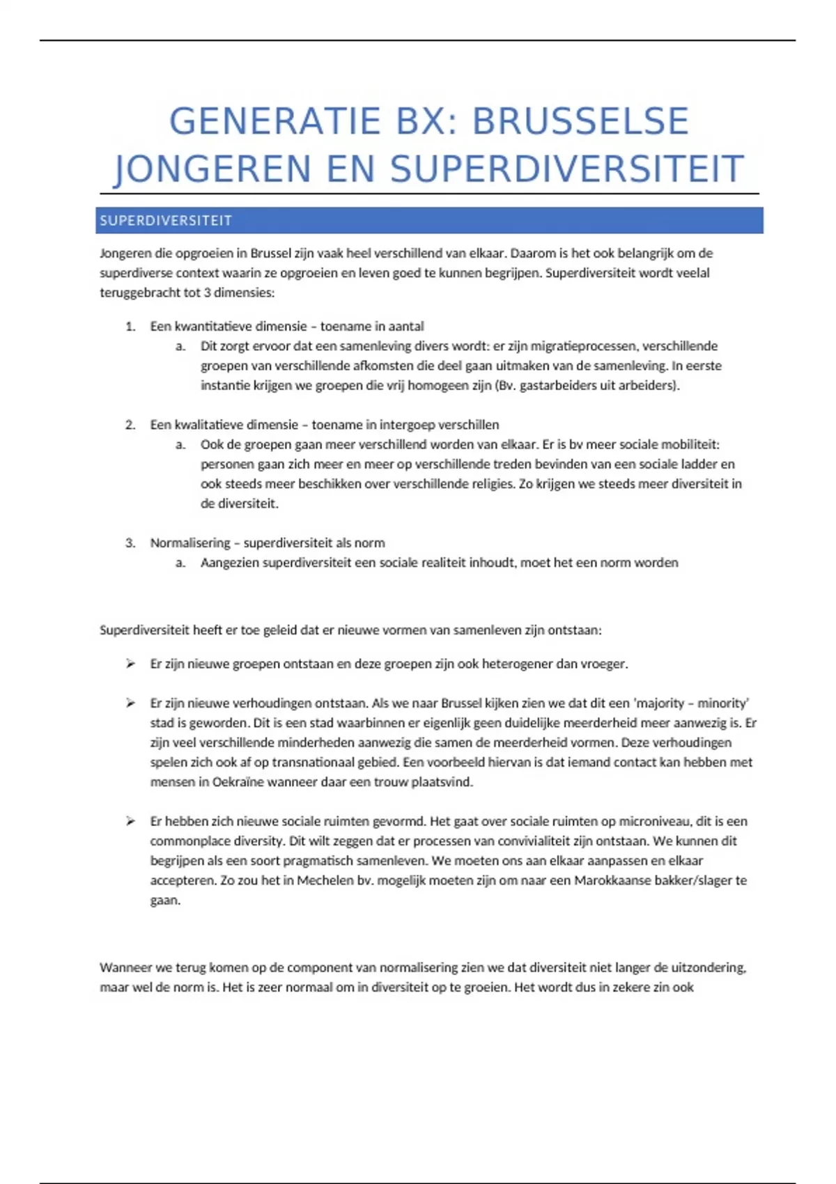 Nota's van het gastcollege Generatie BX over de super diverse samenleving in de Brusselse gemeenschap. Dit gastcollege hoort bij het vak criminaliteit en samenleving.