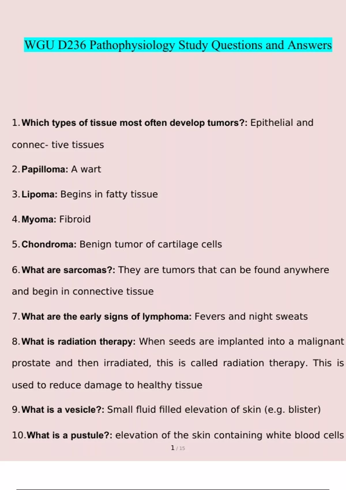 WGU D236-PATHOPHYSIOLOGY EXAM LATEST UPDATED GRADED A , WGU D236 pathophysiology Exam -Study Guide-With 100% verified answers-2022- 2023, WGU D236 pathophysiology Exam -Study Guide With 100% verified answers-2022-2023 & WGU D236 pathophysiology OA Exam -