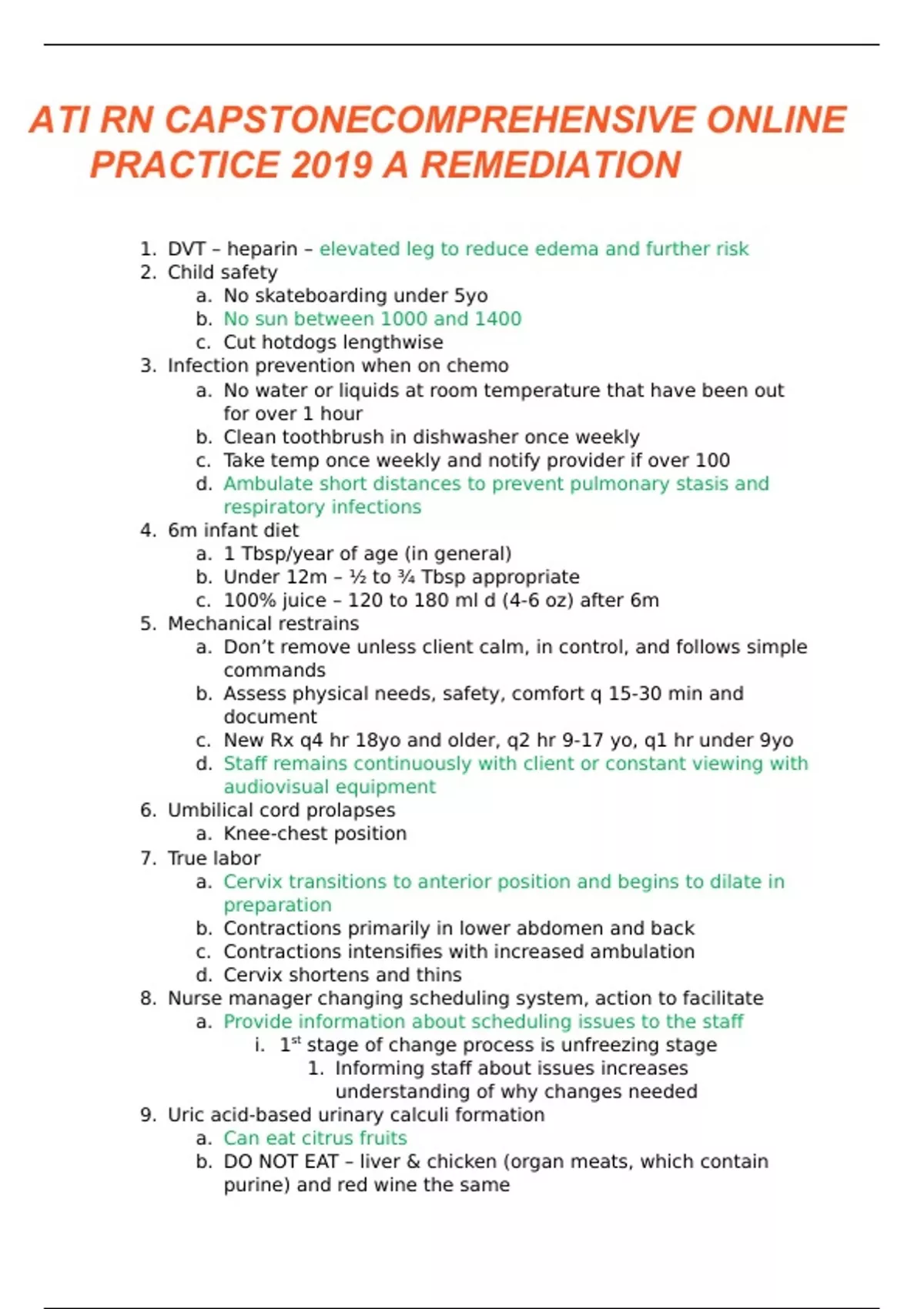 RN ATI Capstone Comprehensive Assessment 2019 A Remediation