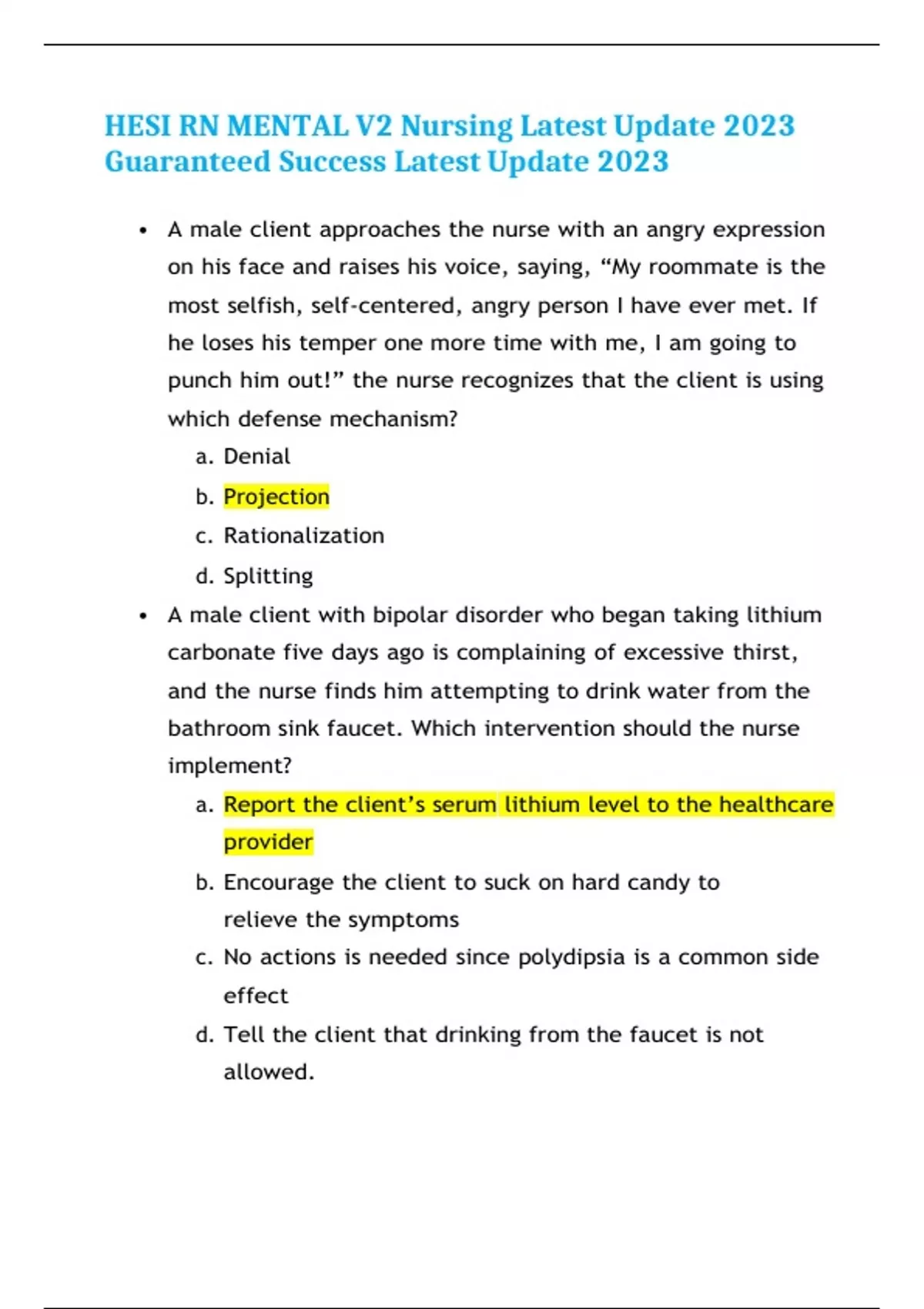 HESI RN MENTAL V2 Nursing Latest Update 2023 Guaranteed Success Latest Update 2023