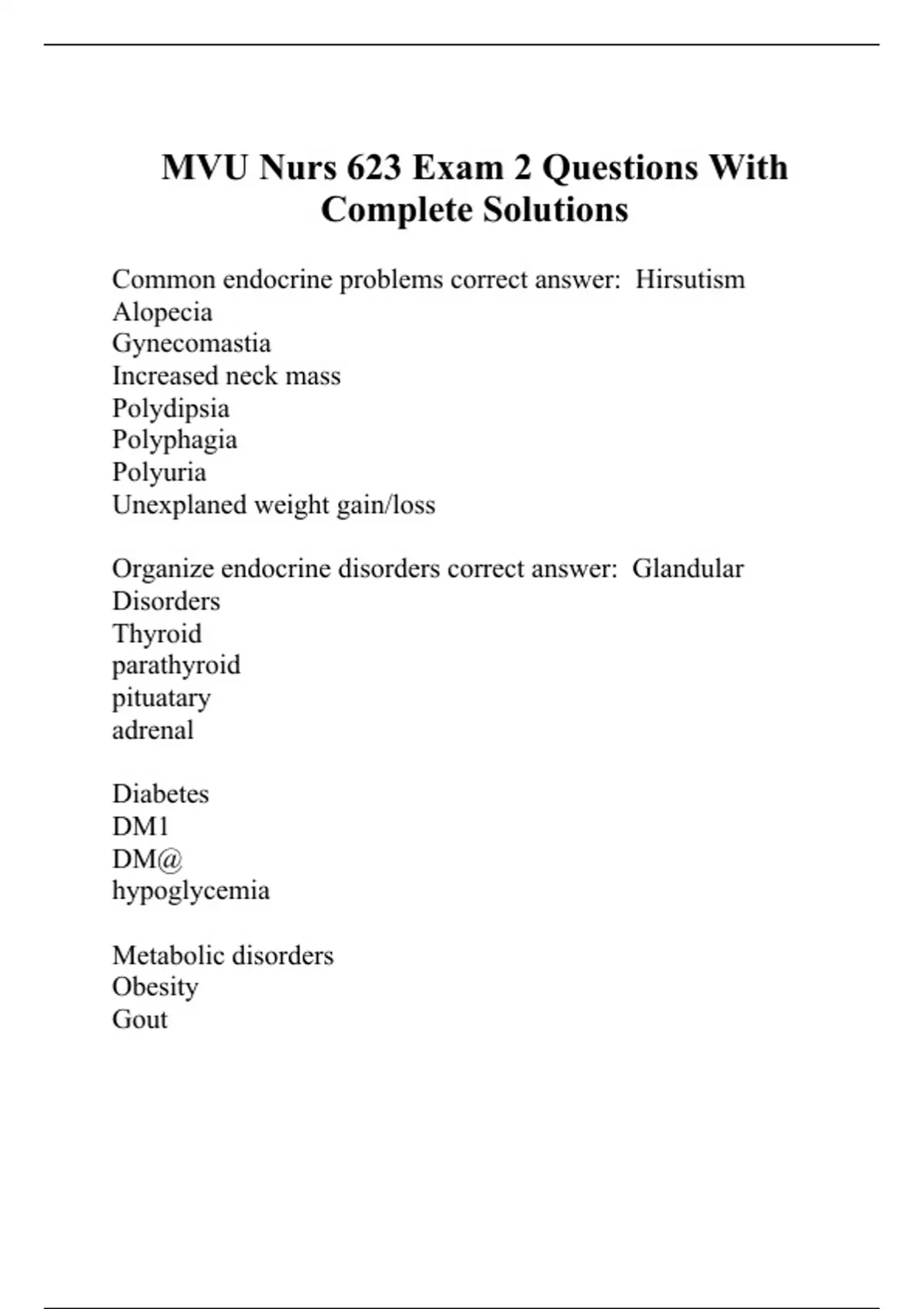MVU Nurs 623 Exam 2 Questions With Complete Solutions