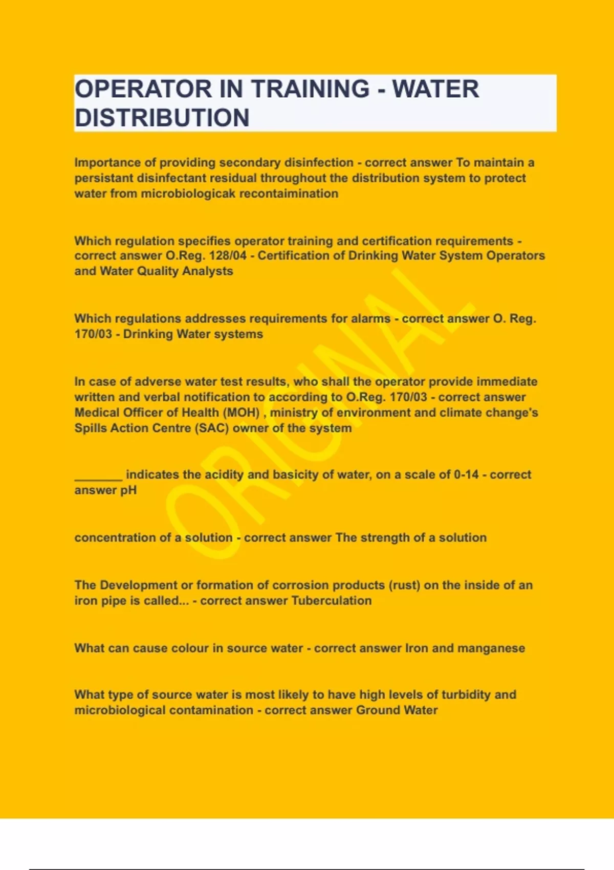 OPERATOR IN TRAINING - WATER DISTRIBUTION|UPDATED&VERIFIED|100% SOLVED|GUARANTEED SUCCESS