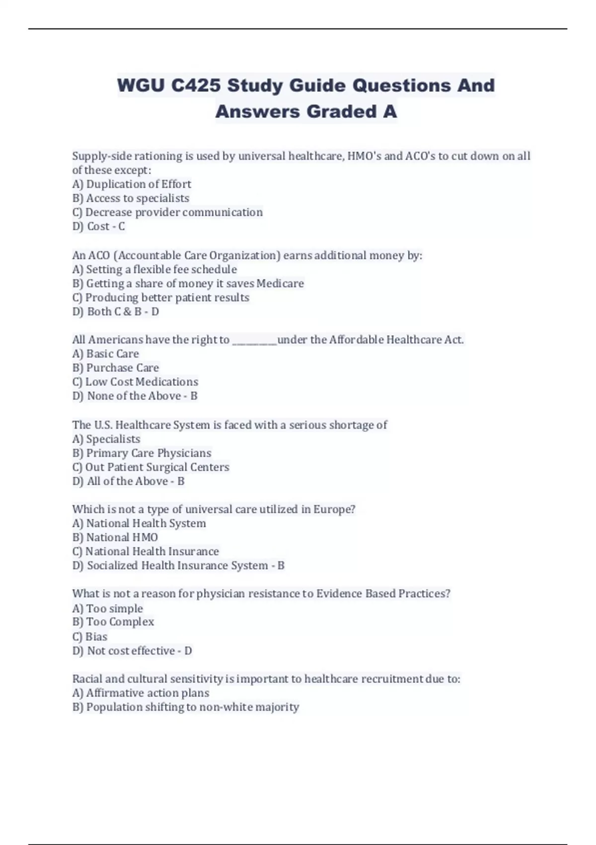 WGU C425 HealthCare Delivery Systems, Regulation And Compliance Study Bundle (100% Verified)