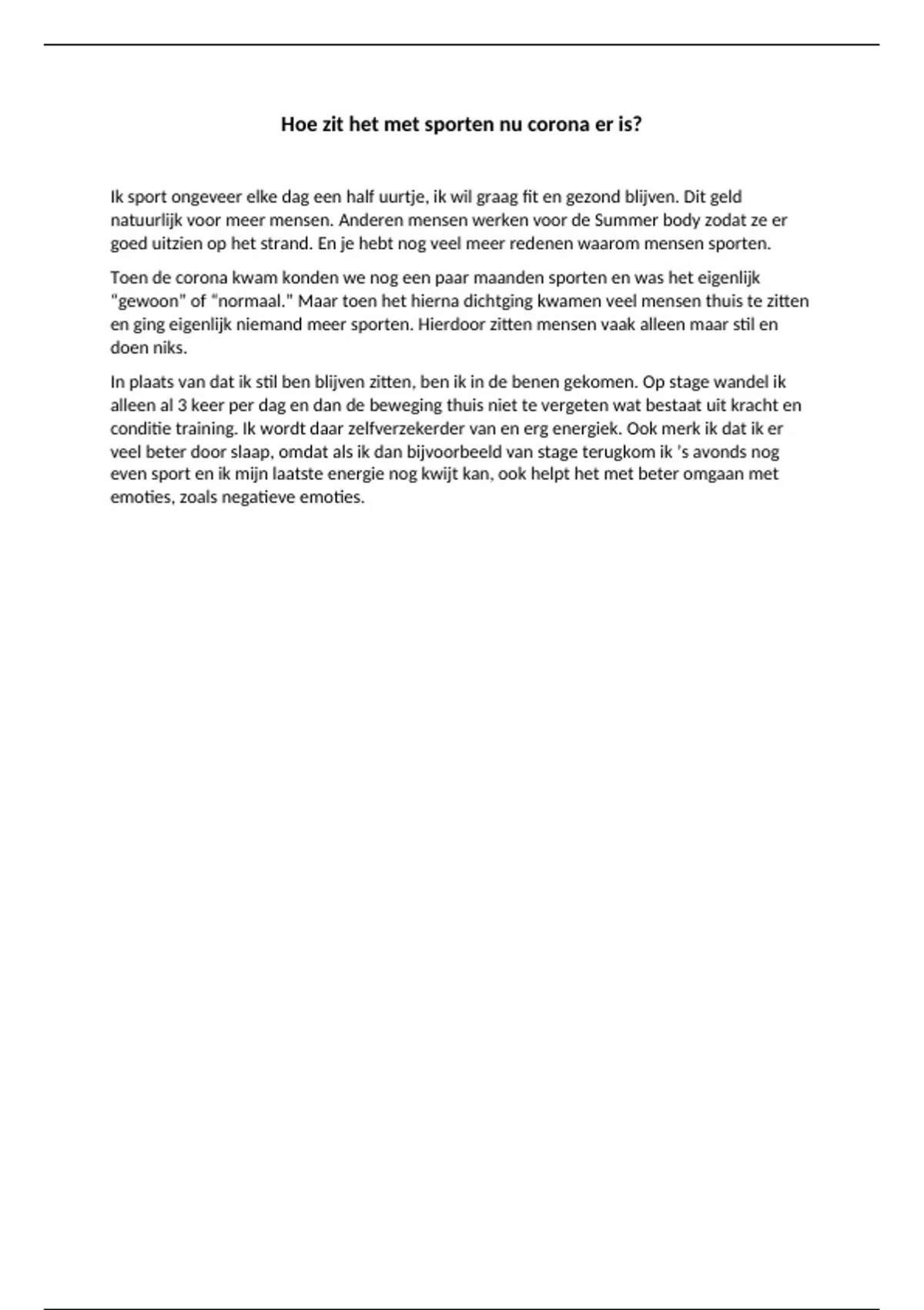 'Hoe zit het met sporten nu corona er is?' is een lesopdracht voor het vak vitaliteit en bewegen in het eerste leerjaar van de mbo opleiding maatschappelijke zorg (en verzorgende ig) op Aventus ROC waar ik heb gekookt en het recept heb uitgewerkt. De opdracht is compleet uitgewerkt en in een keer goedgekeurd.