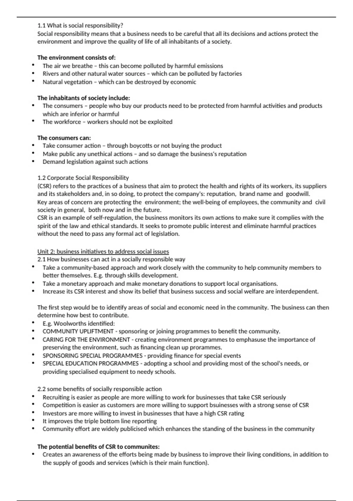 CSR is an example of self-regulation, the business monitors its own actions to make sure it complies with the