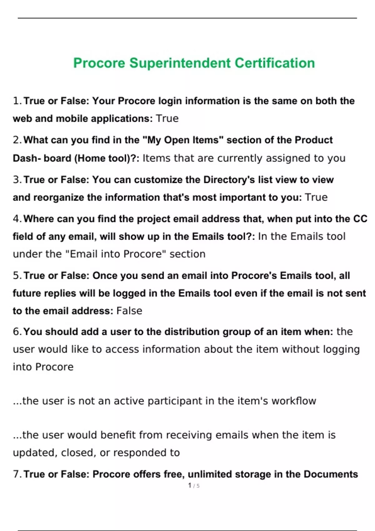 Procore Superintendent Certification Exam 2023 Questions and Answers Verified