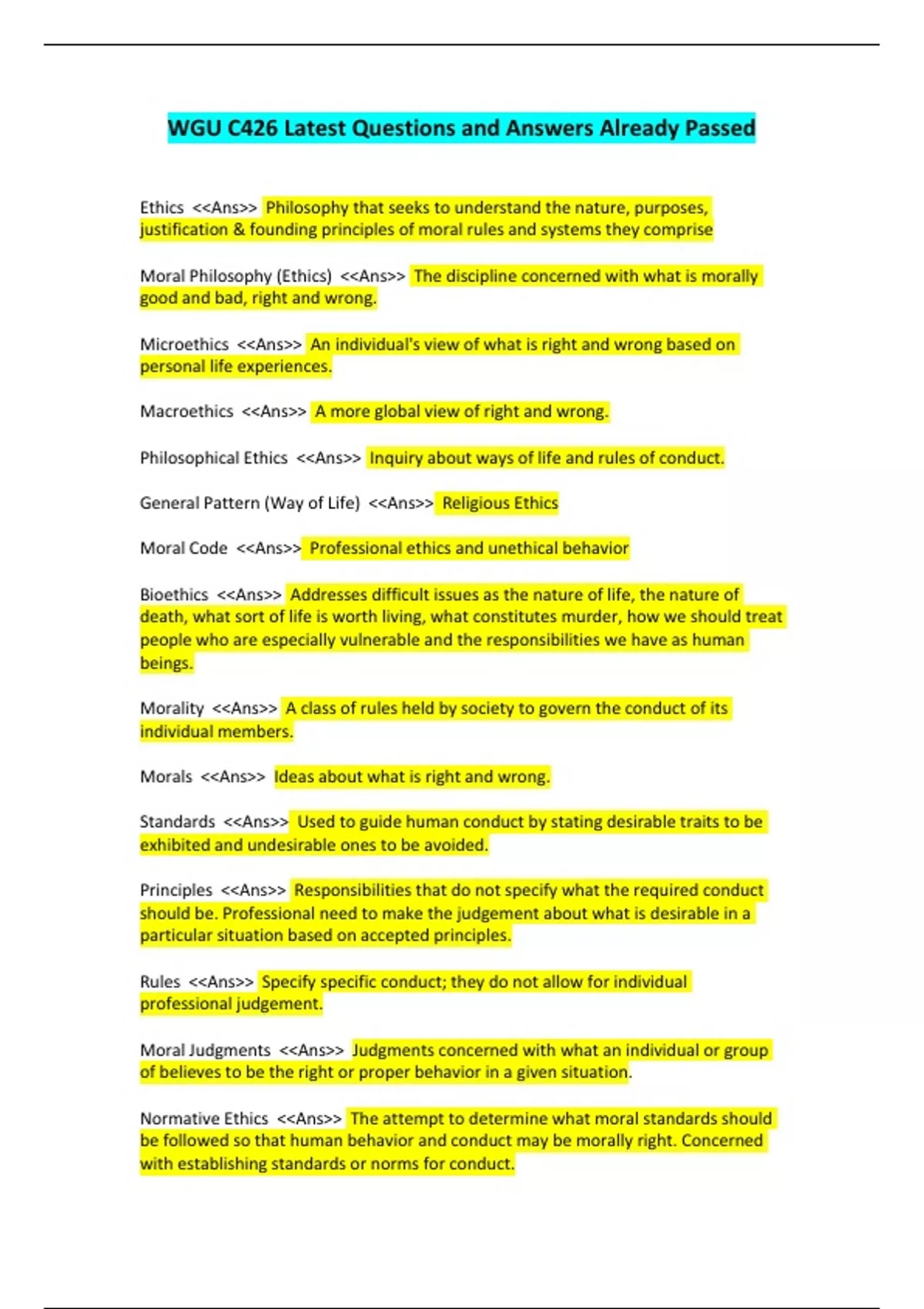 wgu c426 latest questions and answers