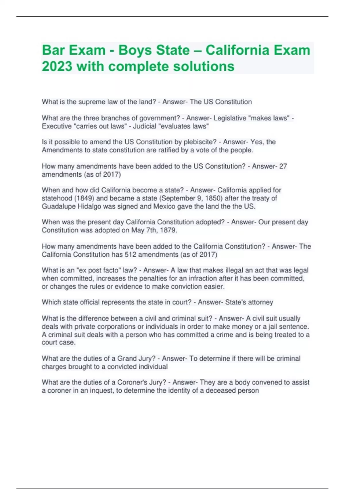 Bar Exam - Boys State – California Exam 2023 with complete solutions