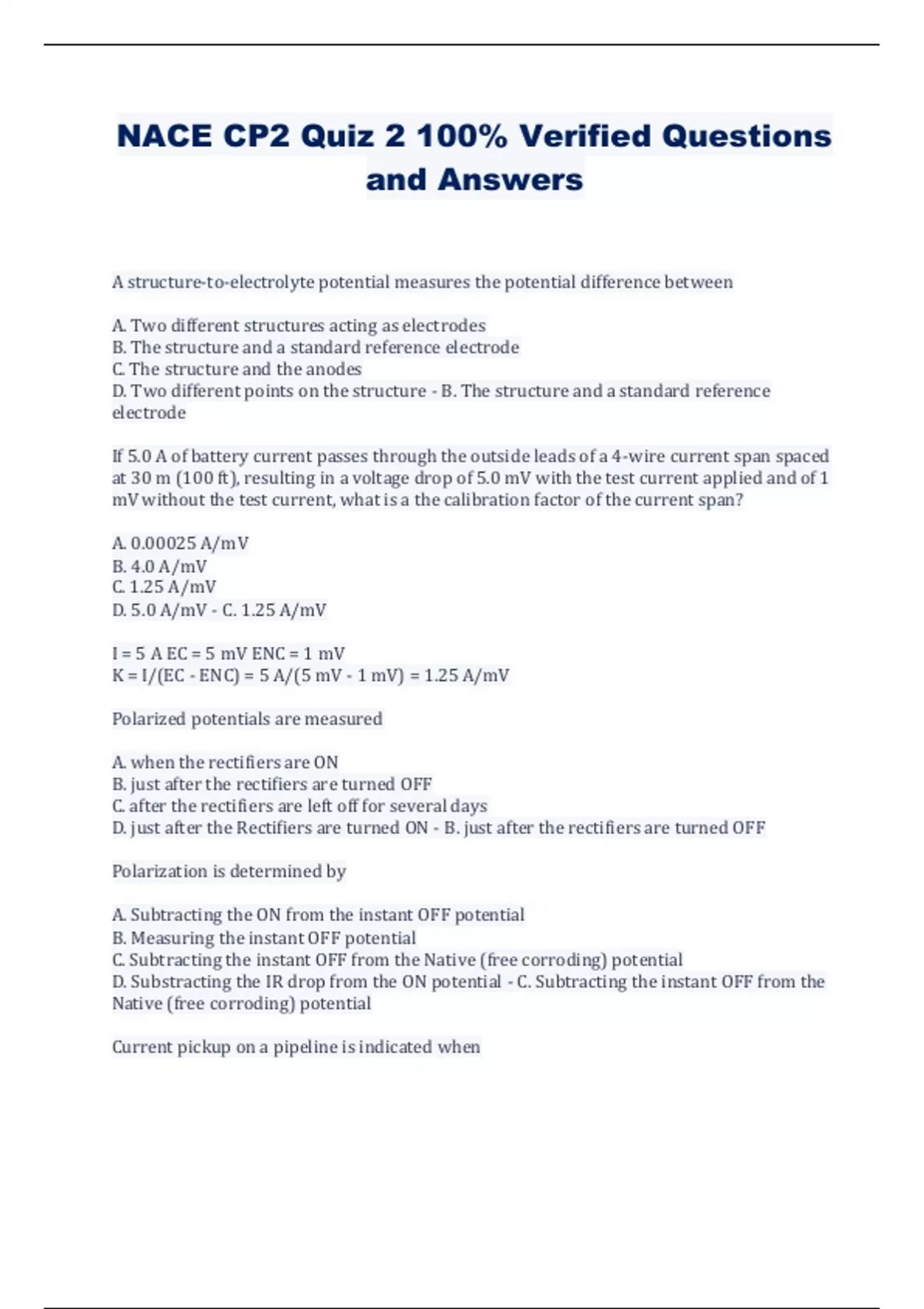 NACE CP2 Quiz 2 100% Verified Questions and Answers