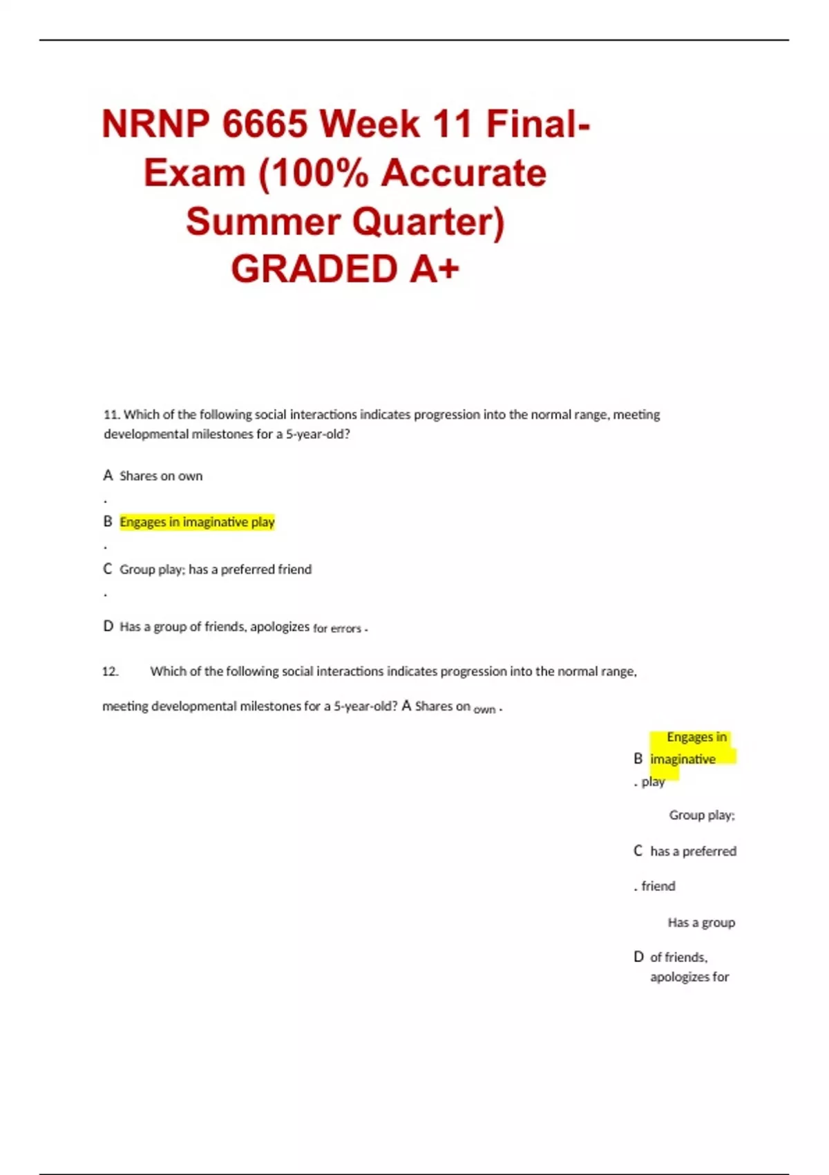 NRNP 6665 Week 11 Final-Exam (100% Accurate Summer Quarter) GRADED A+ NRNP 6665 Week 11 Final-Exam (100% Accurate Summer Quarter) GRADED A+
