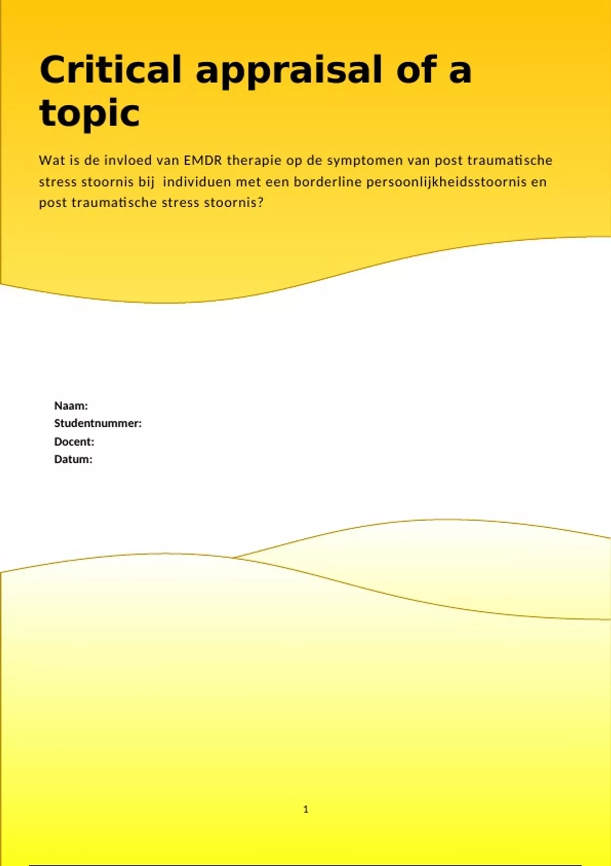 Onderzoeksvraag: Wat is de invloed van EMDR therapie op de symptomen van post traumatische