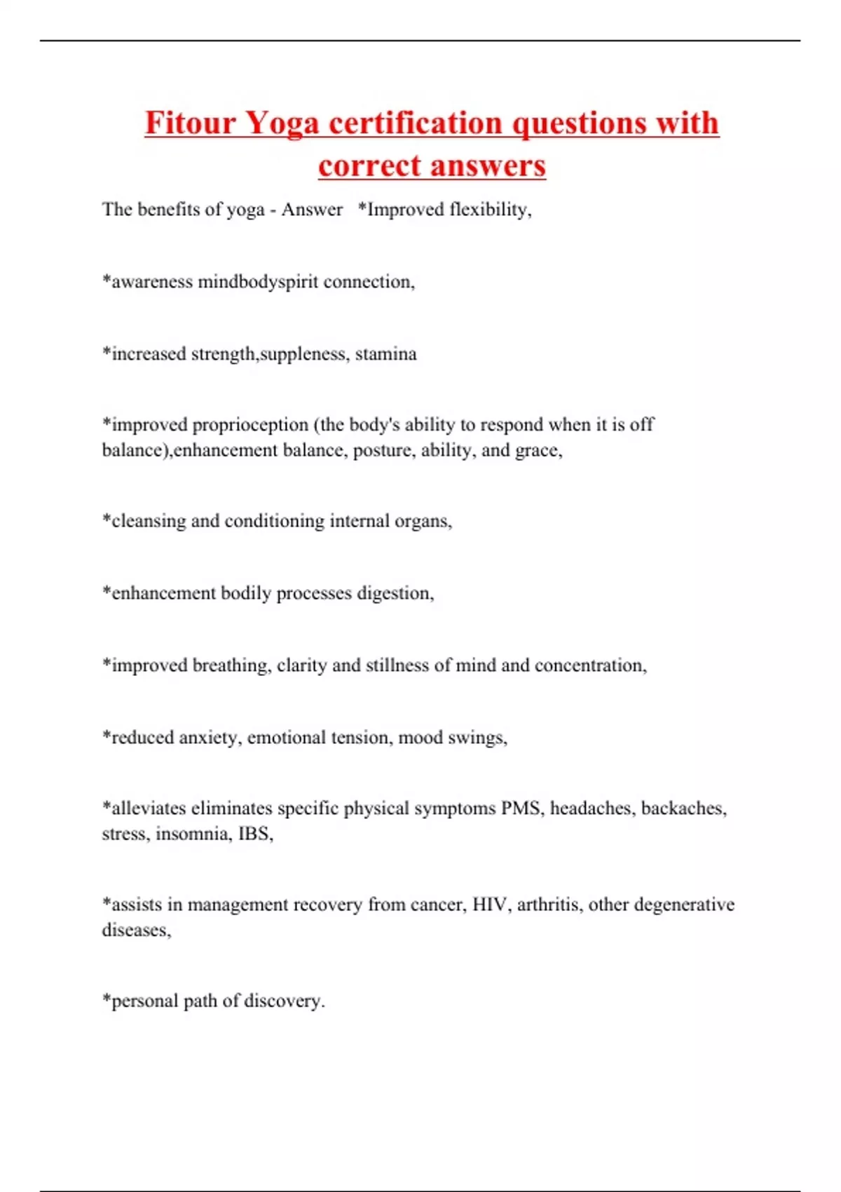 The benefits of yoga - Answer *Improved flexibility, *awareness mindbodyspirit connection, *increased strength,suppleness, stamina *improved proprioception (the body's ability to respond when it is off balance),enhancement balance, posture, ability, and grace, *cleansing and conditioning internal organs, *enhancement bodily processes digestion, *improved breathing, clarity and stillness of mind and concentration, *reduced anxiety, emotional tension, mood swings, *alleviates eliminates specific physical symptoms PMS, headaches, backaches, stress, insomnia, IBS, *assists in management recovery from cancer, HIV, arthritis, other degenerative diseases, *personal path of discovery.