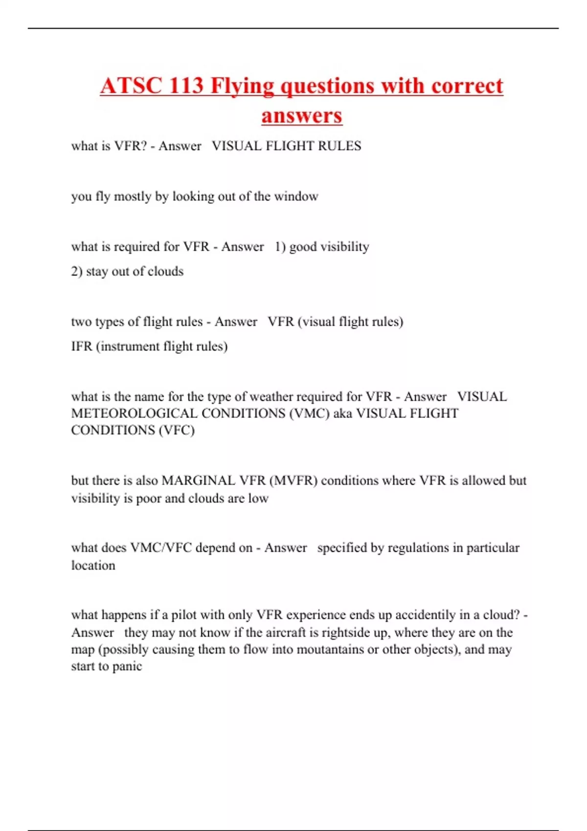 atsc 113 flying questions with correct answers