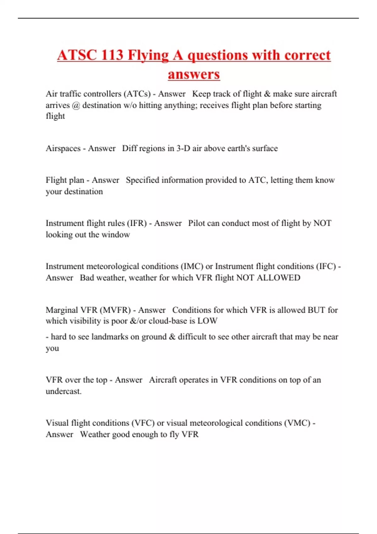 atsc 113 flying a questions with correct answers