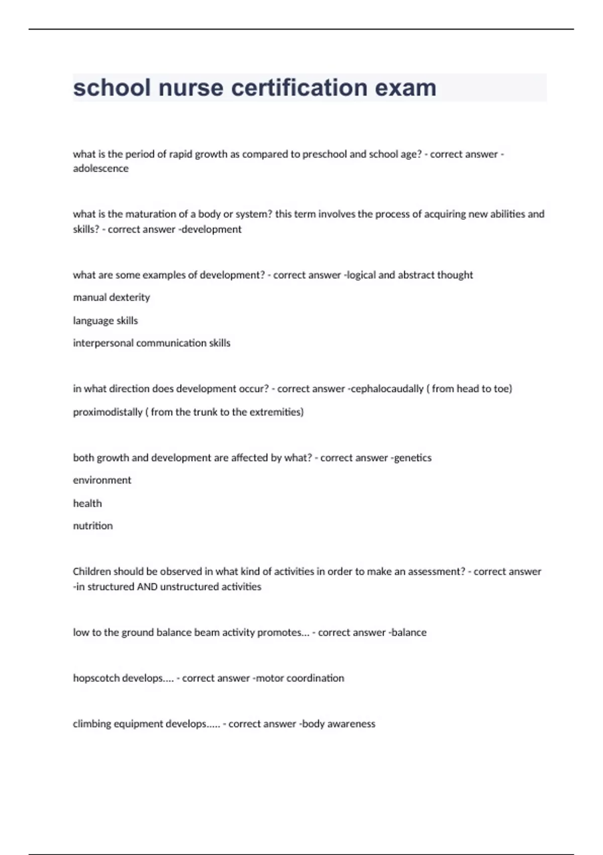 what is the period of rapid growth as compared to preschool and school age? adolescence what is the maturation of a body or system? this term involves the process of acquiring new abilities and skills? development what are some examples of development? logical and abstract thought manual dexterity language skills interpersonal communication skills in what direction does development occur? cephalocaudally ( from head to toe) proximodistally ( from the trunk to the extremities) both growth and development are affected by what? genetics environment health nutrition Children should be observed in what kind of activities in order to make an assessment? in structured AND unstructured activities low to the ground balance beam activity promotes... balance hopscotch develops.... motor coordination climbing equipment develops..... body awareness upper body strength preschool (ages 3-5) are able to jump off steps that are approximately how many inches? 12 inches high A preschool child (age 3-5 y/o) can copy what figure? circle and a cross At what age/ stage do children begin to develop a conscience? during the preschool years (3-5 y/o)