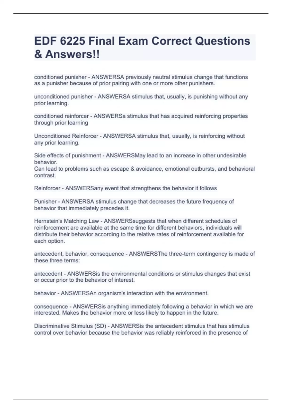 edf 6225 final exam correct questions amp answers