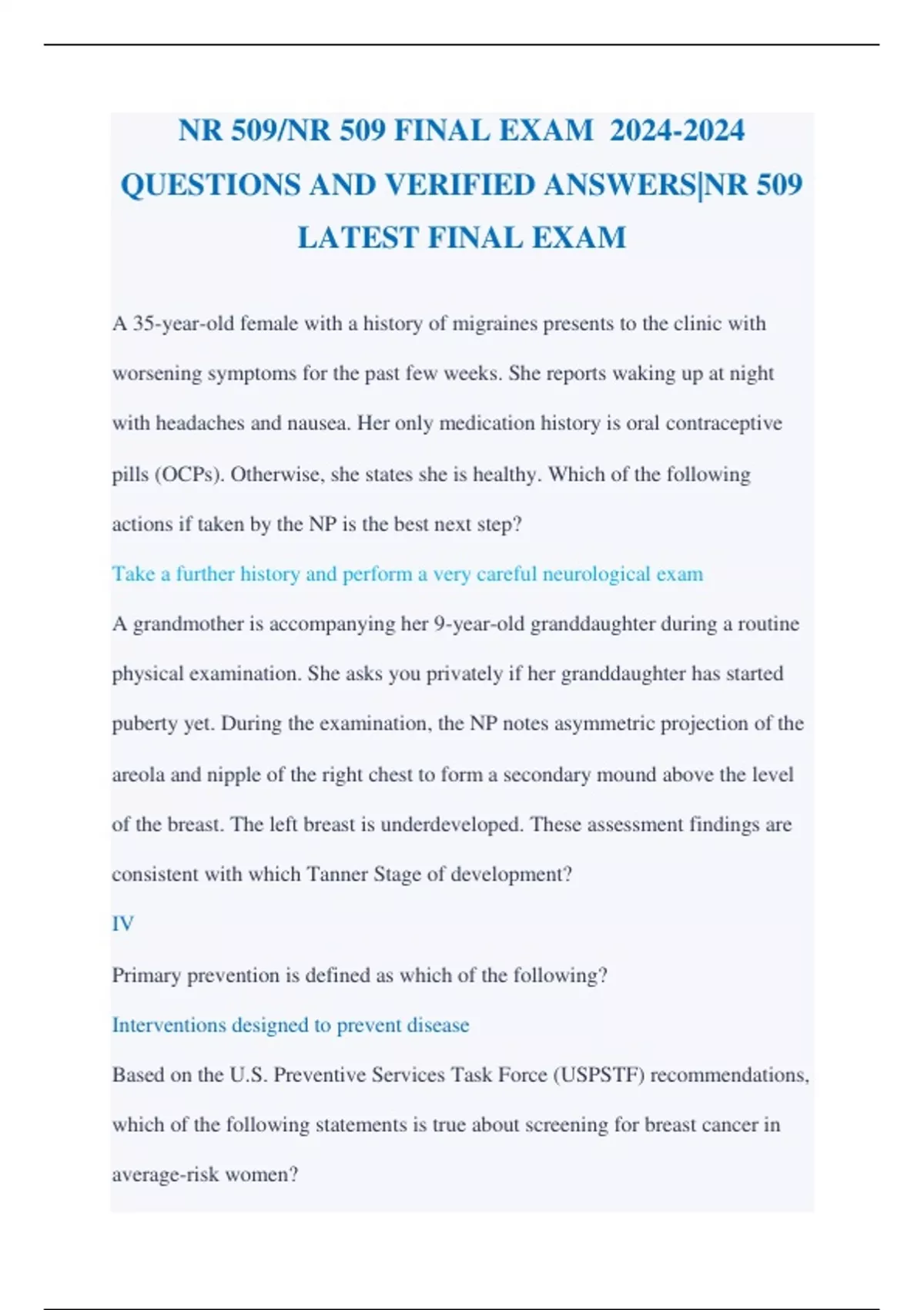 NR 509/NR 509 FINAL EXAM QUESTIONS AND VERIFIED ANSWERS|NR 509 LATEST FINAL EXAM