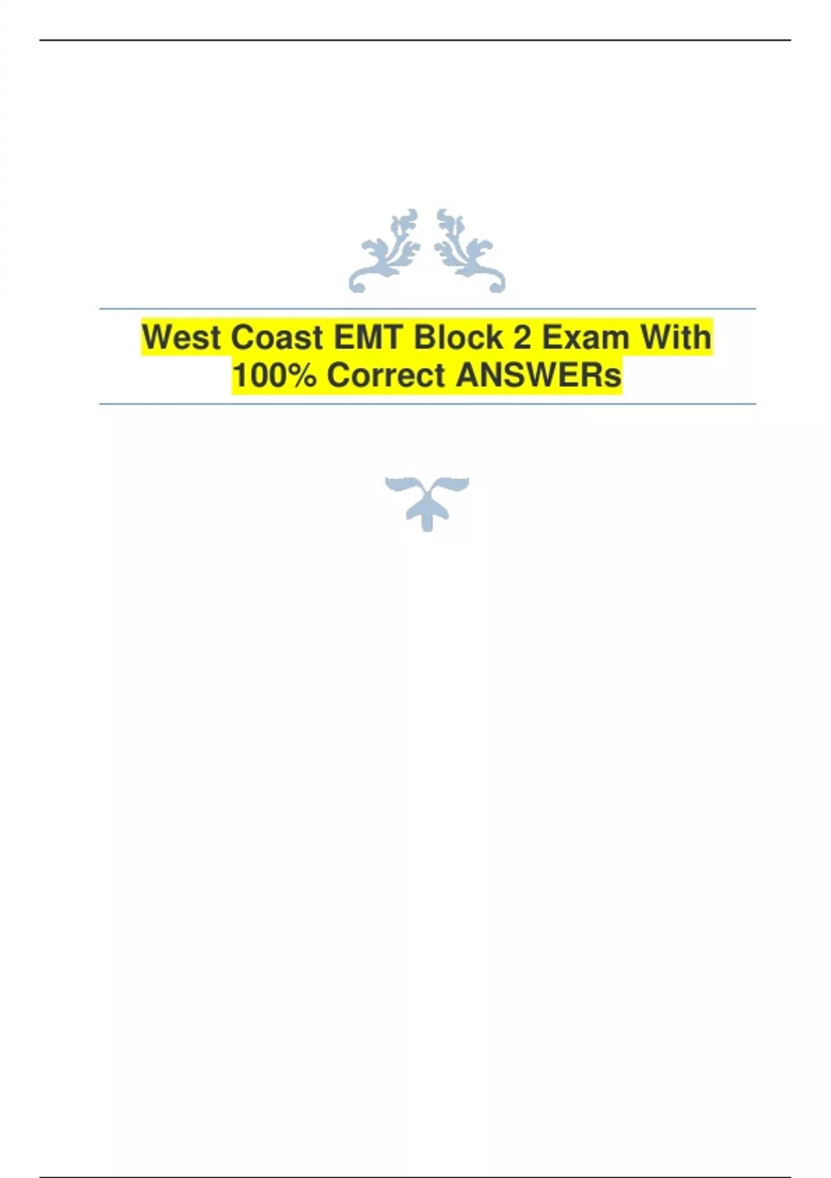 West Coast EMT Block 2 Exam With 100% Correct ANSWERs