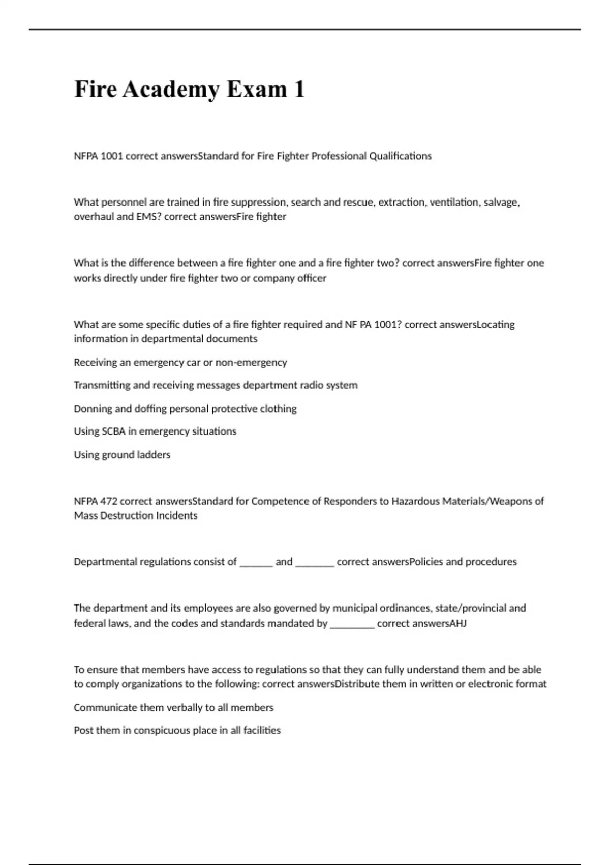 fire academy exam 2023 with correct answers