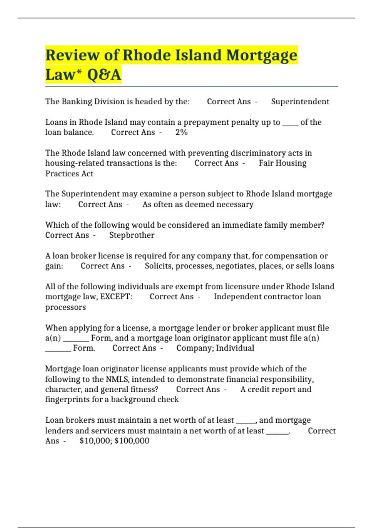 - Rhode Island Mortgage Law* Q&A