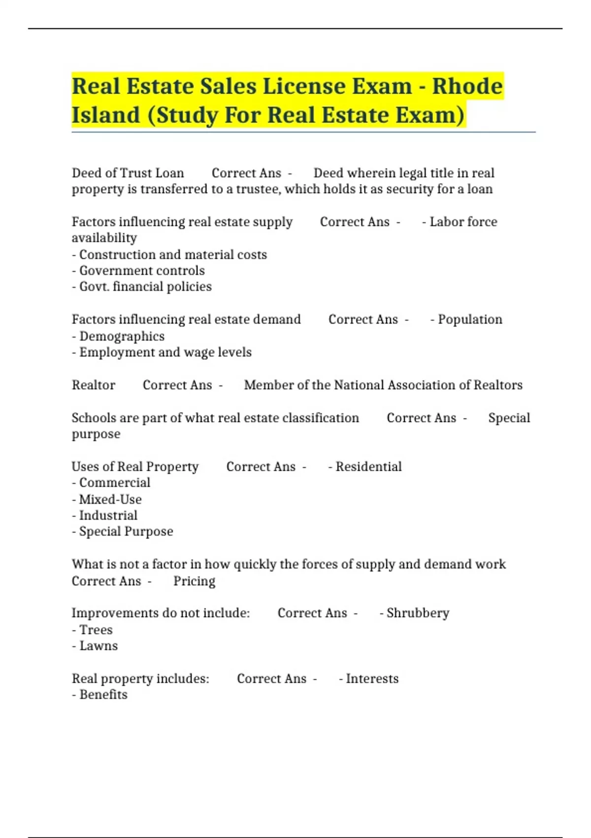 Real Estate Sales License Exam - Rhode Island (Study For Real Estate Exam)