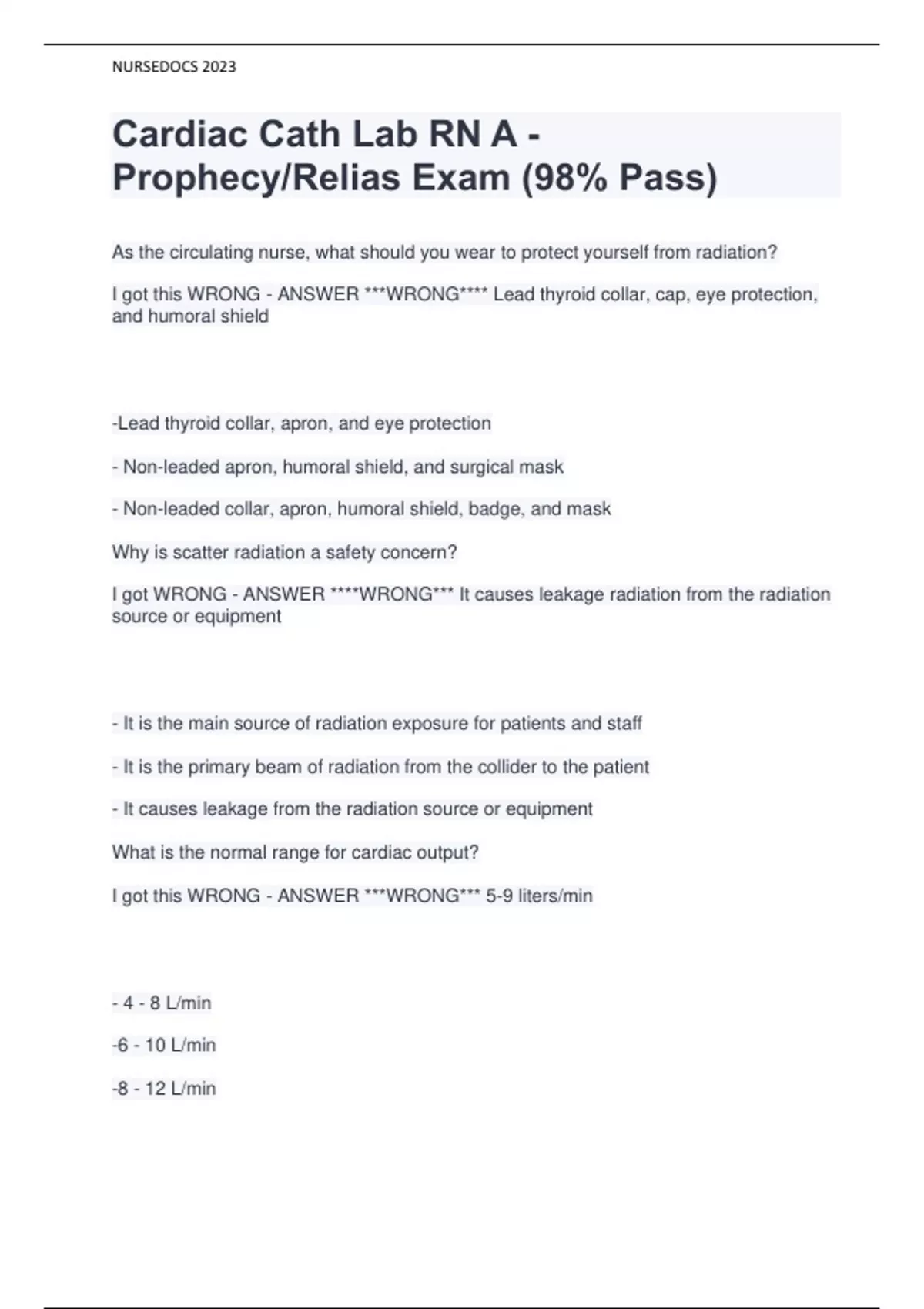 Prophecy/Relias Cardiac Cath Lab RN A Complete Test 2023