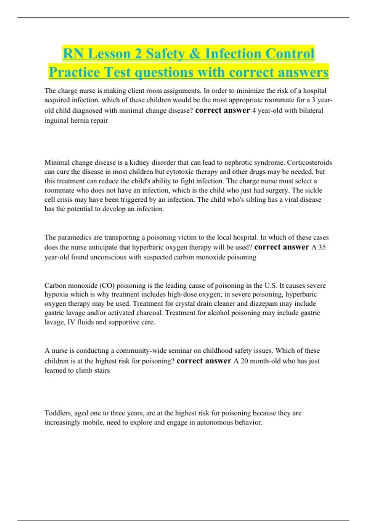 RN Lesson 2 Safety & Infection Control Practice Test questions with correct answers