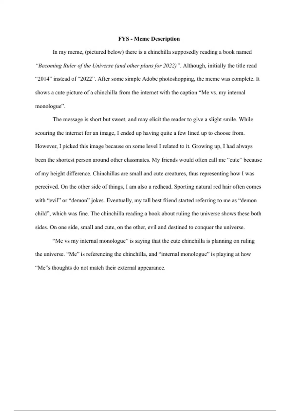 This is a self-made meme (besides the actual chinchilla picture) and a description about the meme itself.