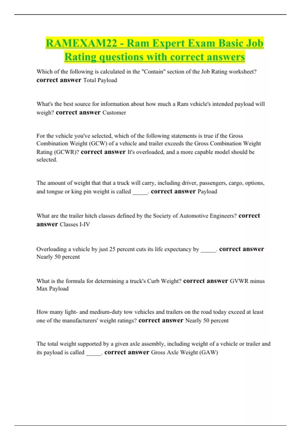 RAMEXAM22 - Ram Expert Exam Basic Job Rating questions with correct answers