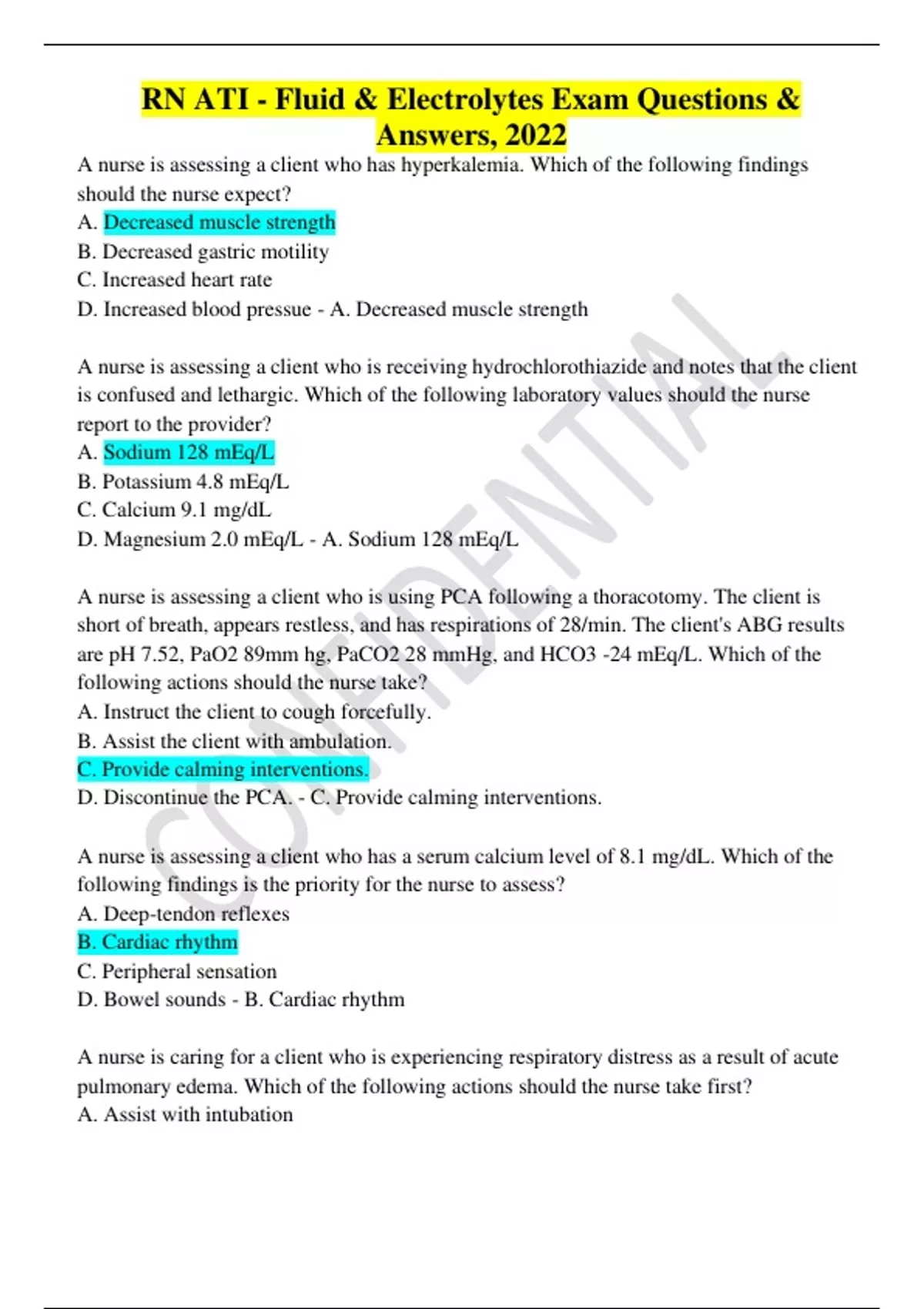 RN ATI - Fluid & Electrolytes Exam Questions & Answers, 2022 RN ATI - Fluid & Electrolytes Exam Questions & Answers, 2022