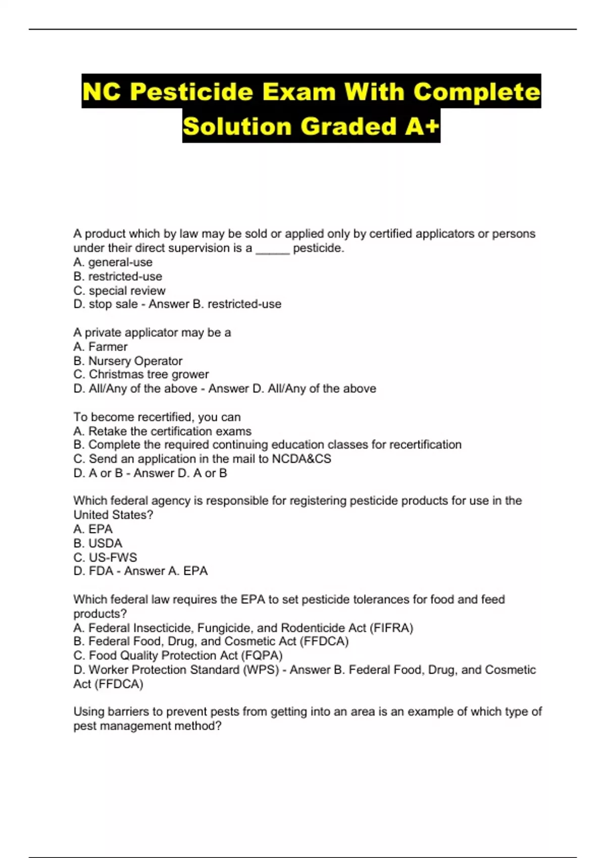 PESTICIDE BUNDLED EXAMS WITH COMPLETE SOLUTION GRADED A+