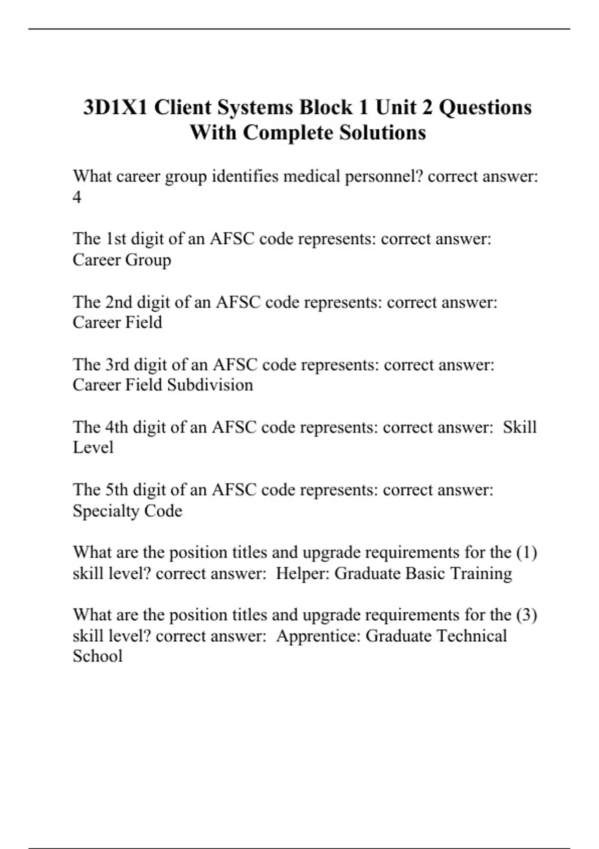 3D1X1 Client Systems Block 1 Unit 2 Questions With Complete Solutions