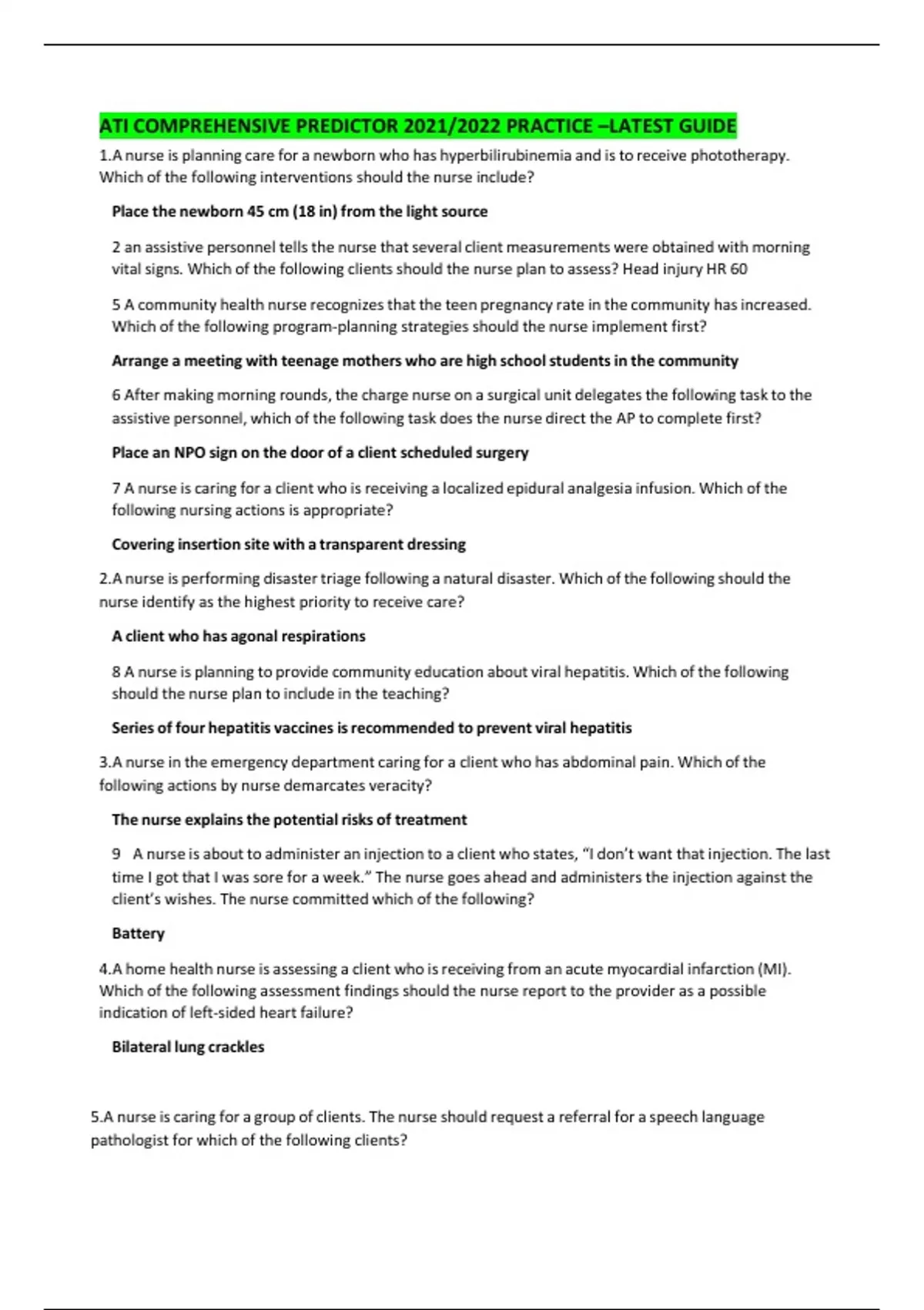 ATI COMPREHENSIVE PREDICTOR 2021/2022 PRACTICE –LATEST GUIDE