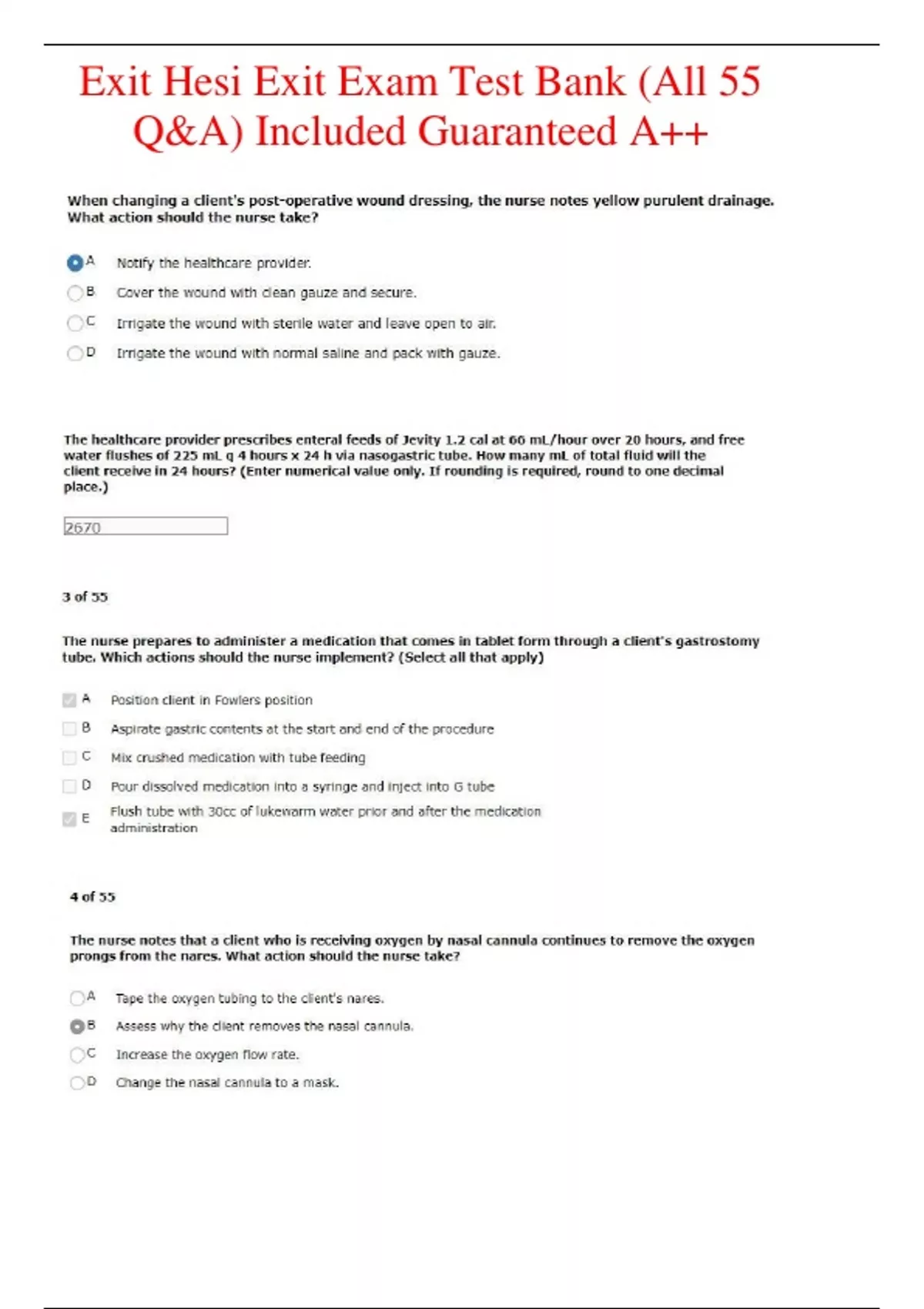 Exit Hesi Exit Exam Test Bank (All 55 Q&A) Included Guaranteed