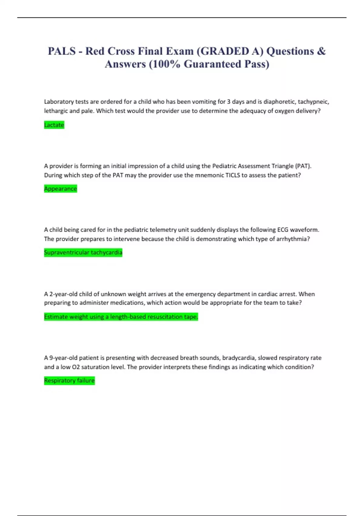 PALS - Red Cross Final Exam (GRADED A) Questions & Answers (100% Guaranteed Pass)