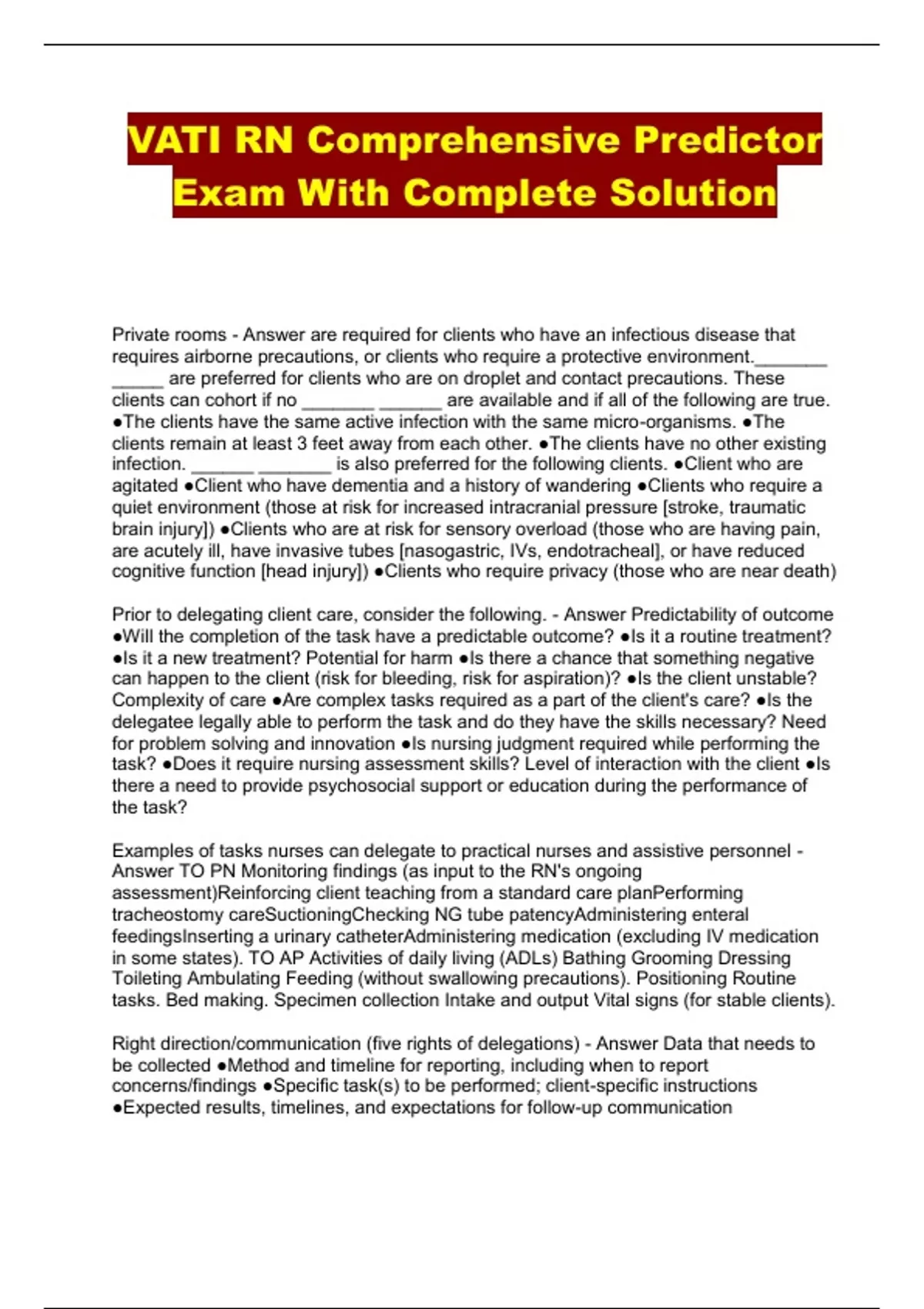 VATI RN Comprehensive Predictor Exam With Complete Solution...