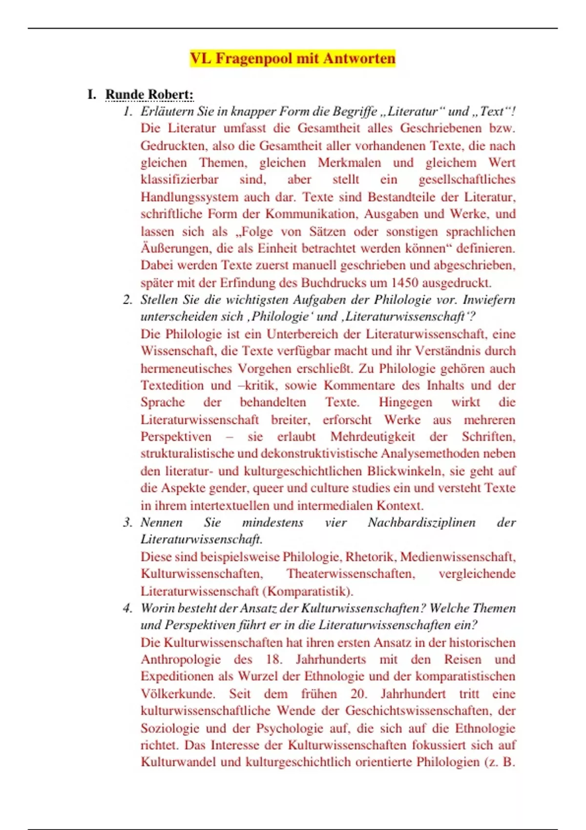 1. Erläutern Sie in knapper Form die Begriffe „Literatur“ und „Text“!