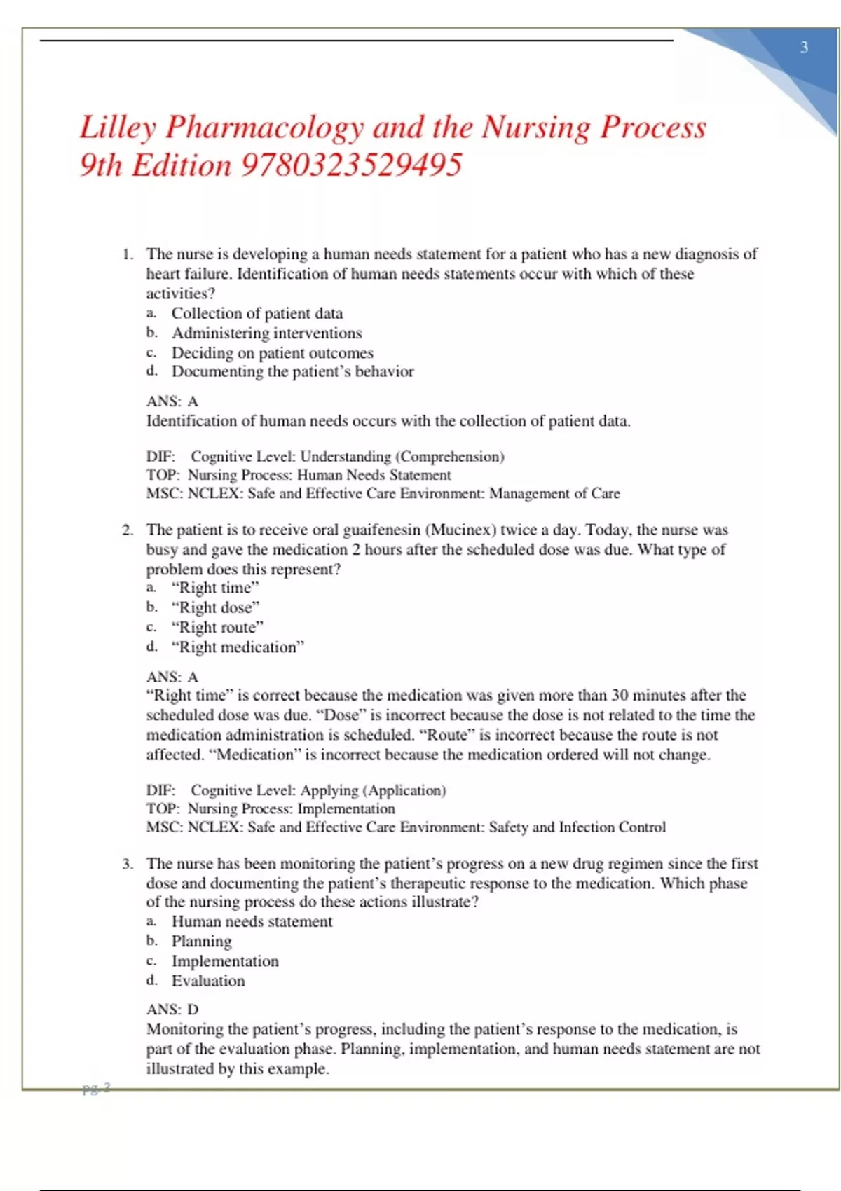 Lilley Pharmacology and the Nursing Process 9th Edition 9495 chapter 1-58/Lilley Pharmacology and the Nursing Process 9th Edition 9495 chapter 1-58/Lilley Pharmacology and the Nursing Process 9th Edition 9495 chapter 1-58