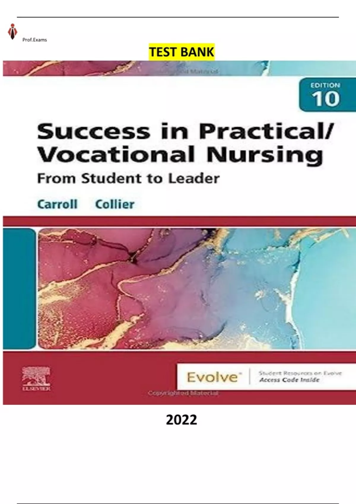 Test Bank - Success in Practical/Vocational Nursing 10Ed.by Janyce L. Carroll, Lisa Collier- Complete, Elaborated and Latest Test Bank. ALL Chapters (1-19) Included and Updated for 2023-5*Rated